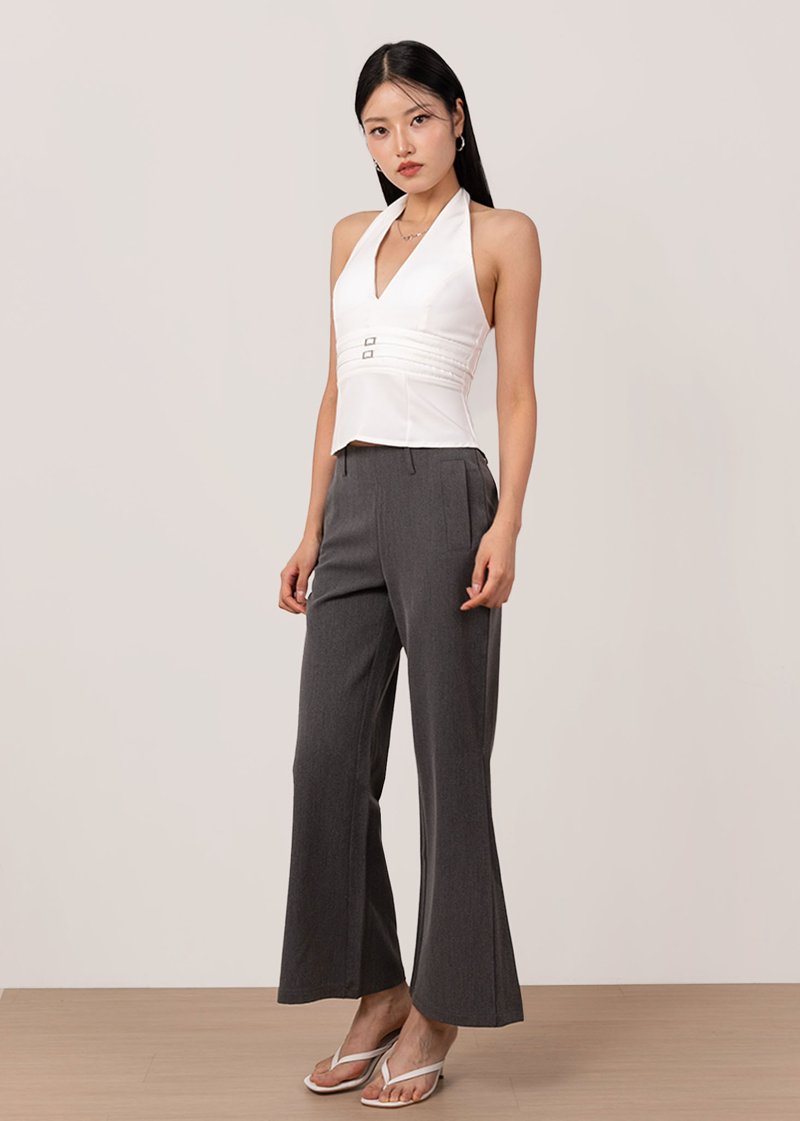 Hotstuff Flare Mid-Waisted Pants in Carbon Grey