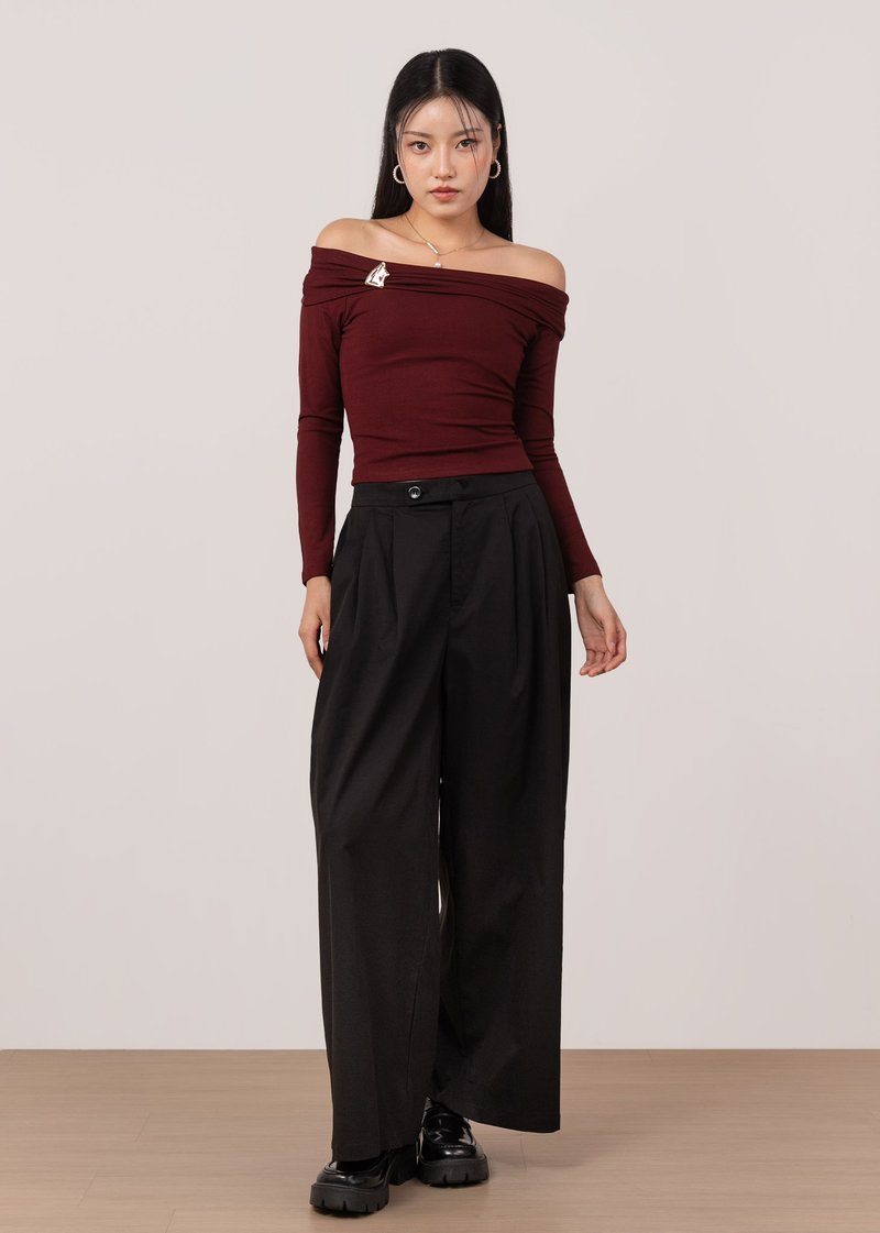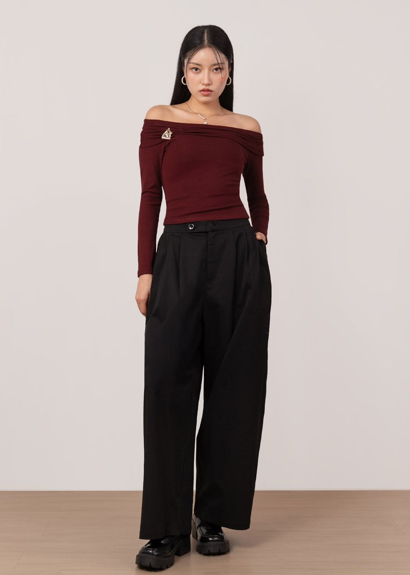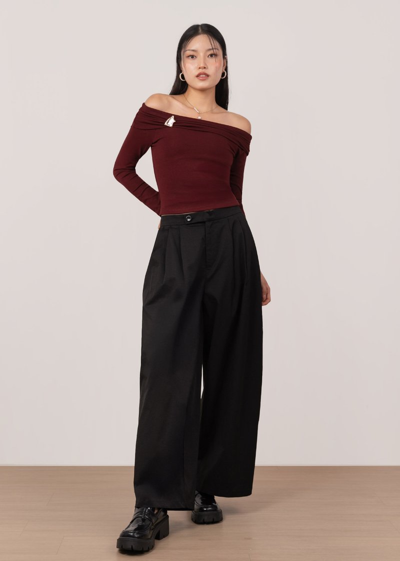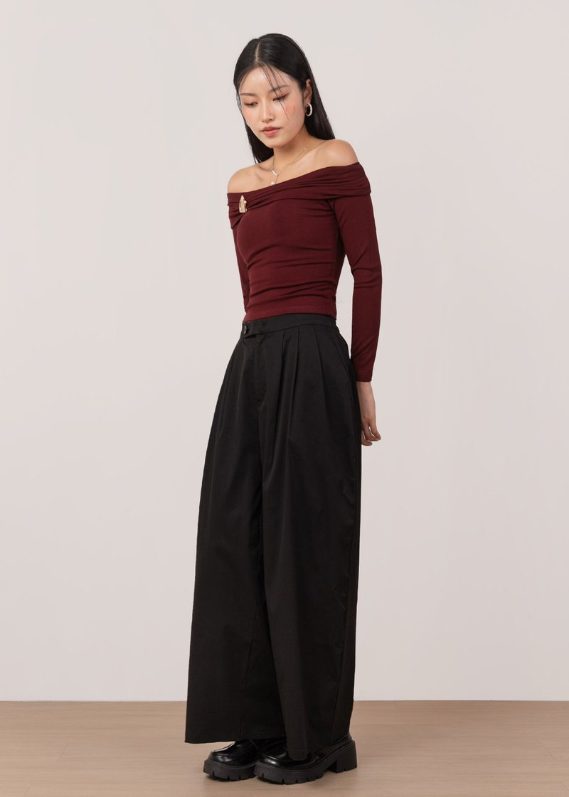 *Features a wide barrel fit with pleated details, an elastic band on the back of the waistband, a front button and comes with functional side pockets