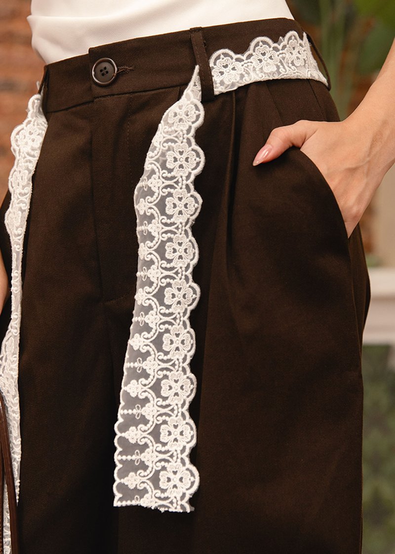 Codon Highwaisted Pants with Lace in Espresso Brown