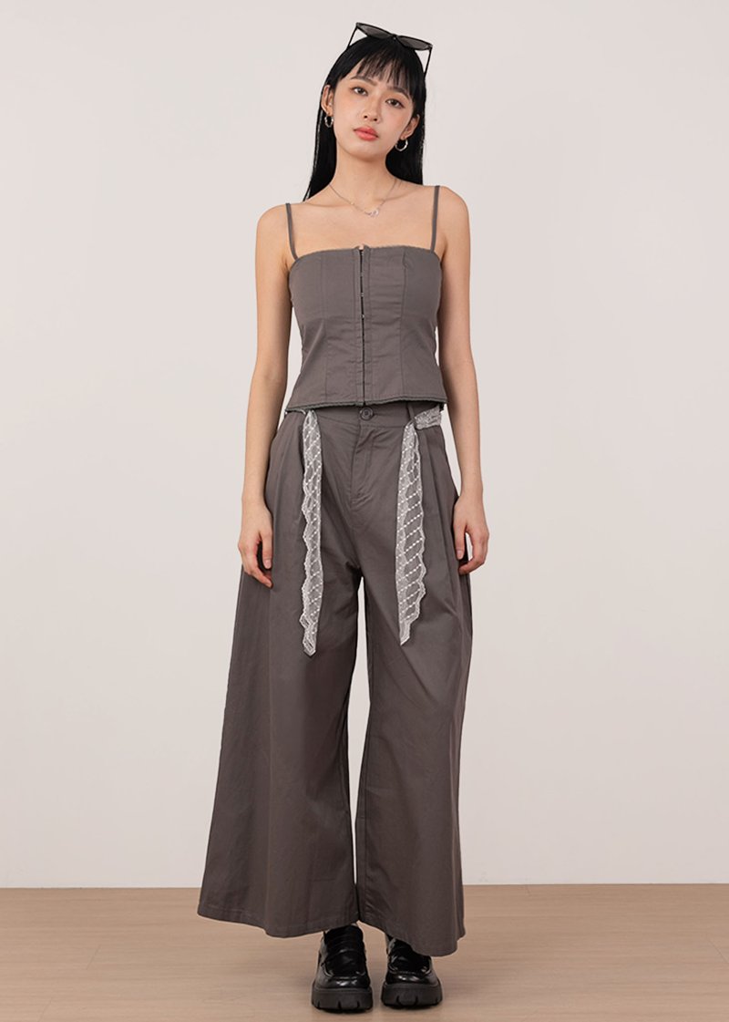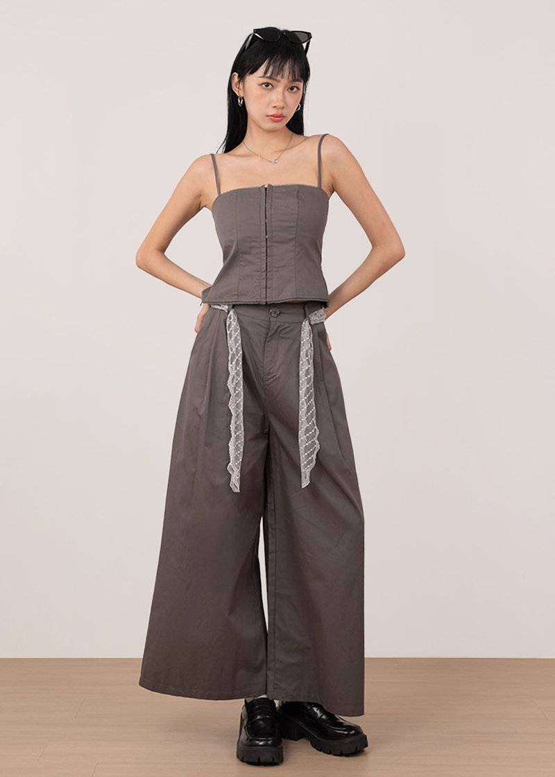 Kara Highwaisted Pants With Lace Belt in Slate Grey