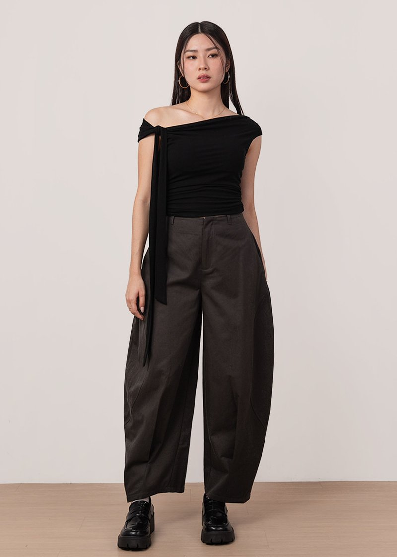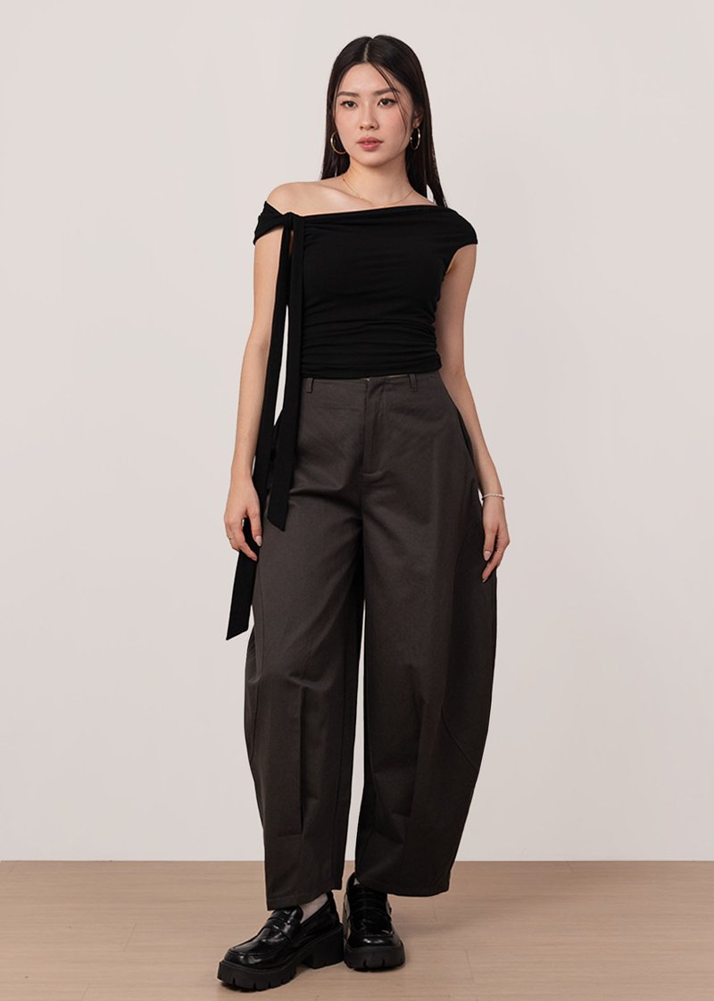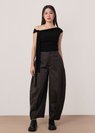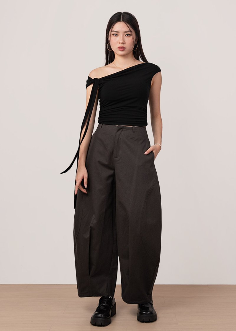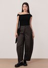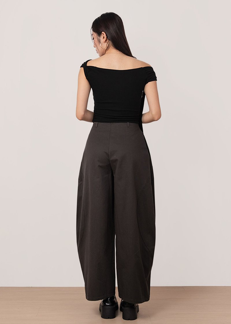*Features a wide barrel cutting fit with a seamless clean waist and metal clasp and functional side pockets