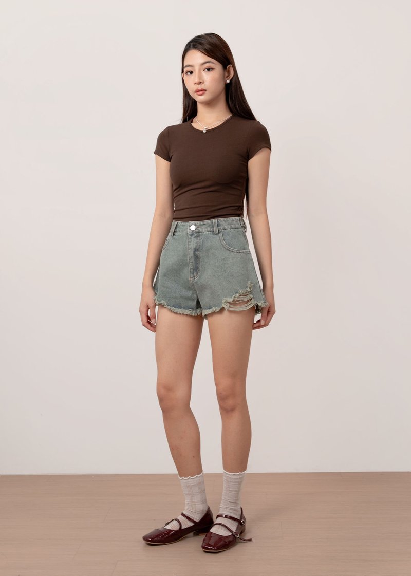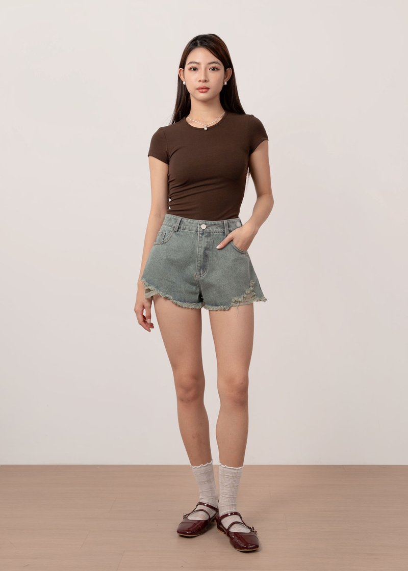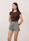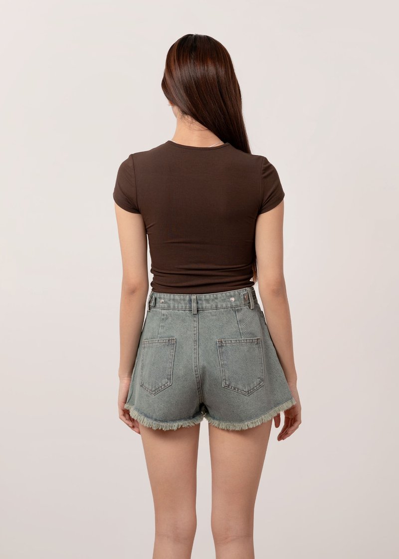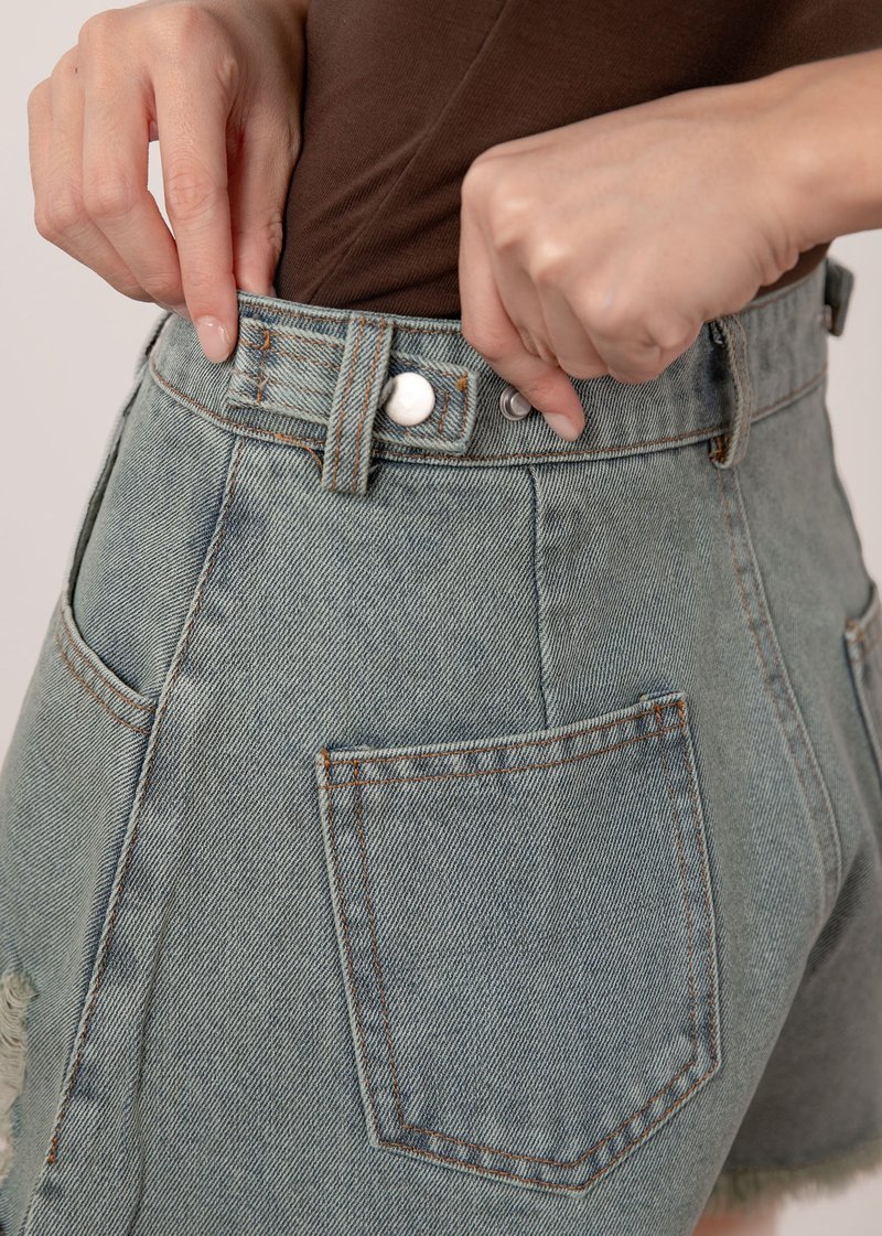 *Features a slight A line cutting, frayed details on the hem with functional side and back pockets and our signature adjustable buttons to tighten the waist (0.5inch each side)