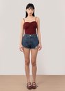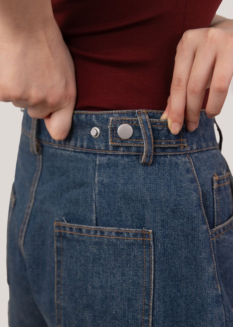 *Features a slight A line cutting, frayed details on the hem with functional side and back pockets and our signature adjustable buttons to tighten the waist (0.5inch each side)
