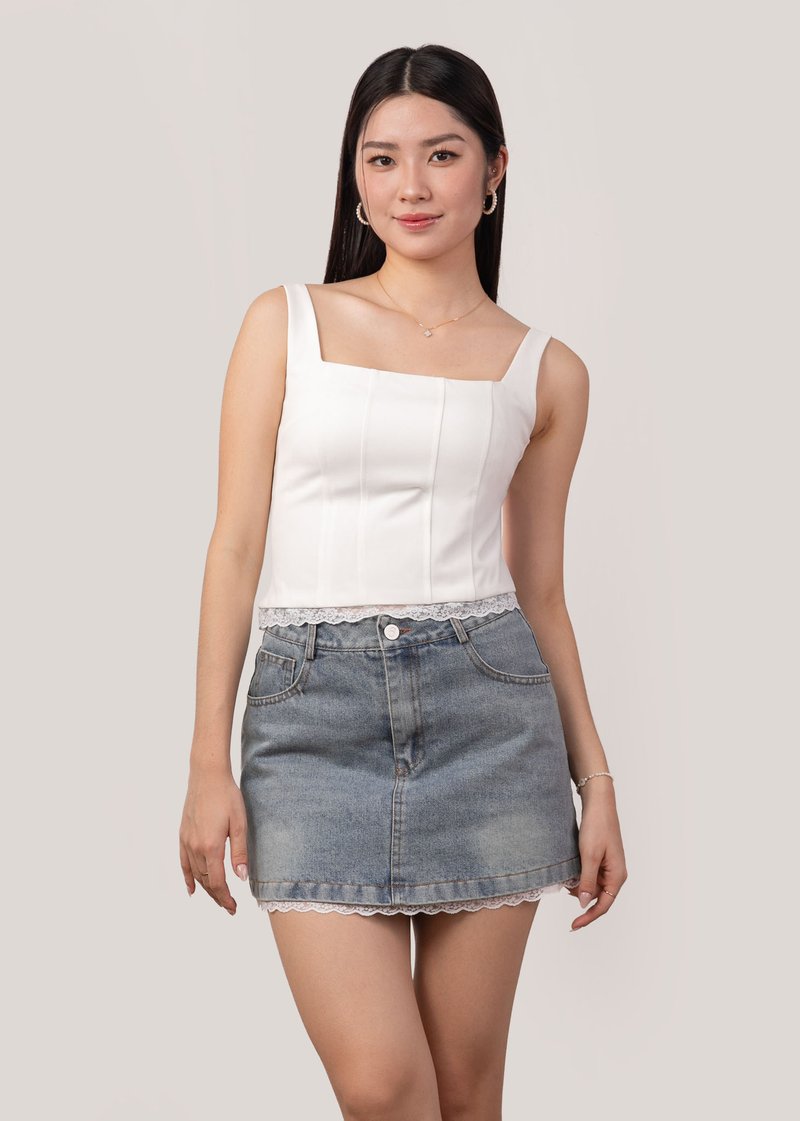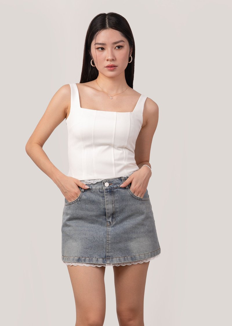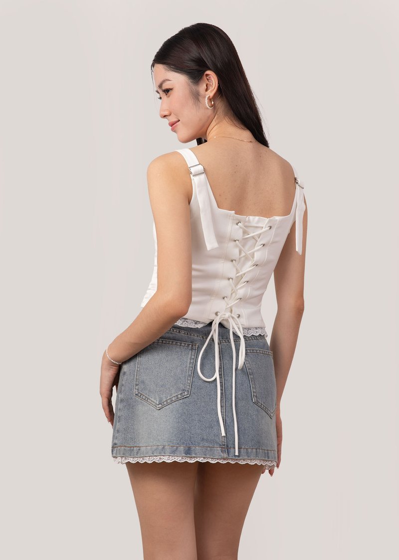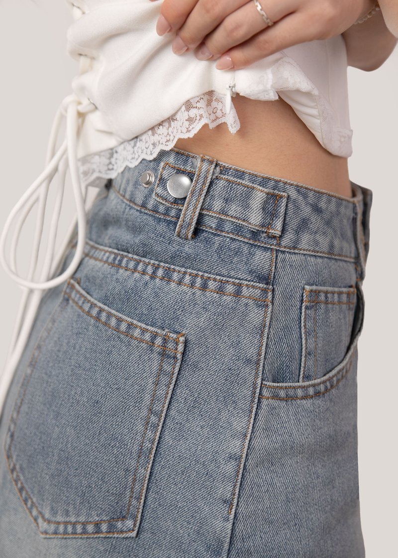 *Skorts features a slight A-line cutting (following charmed skorts), functional side pockets and back pockets, lace trimmings on the bottom and our signature adjustable waist buttons on the sides