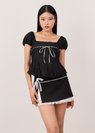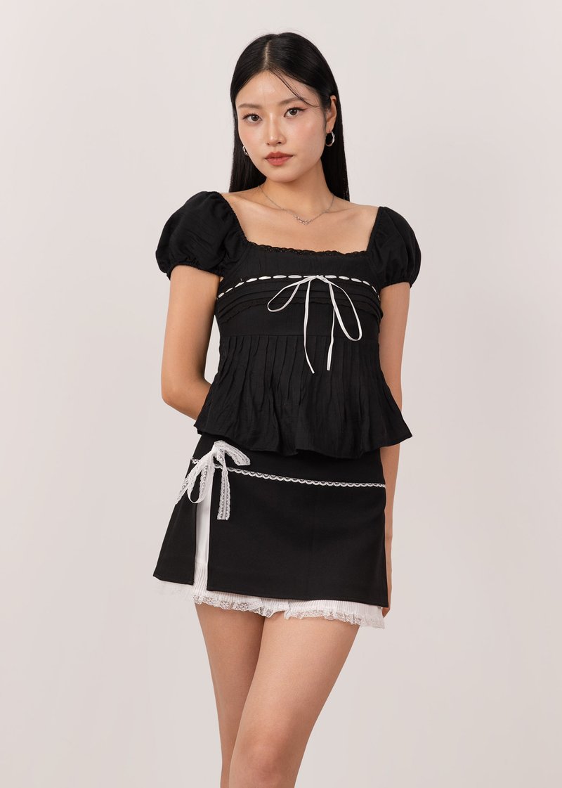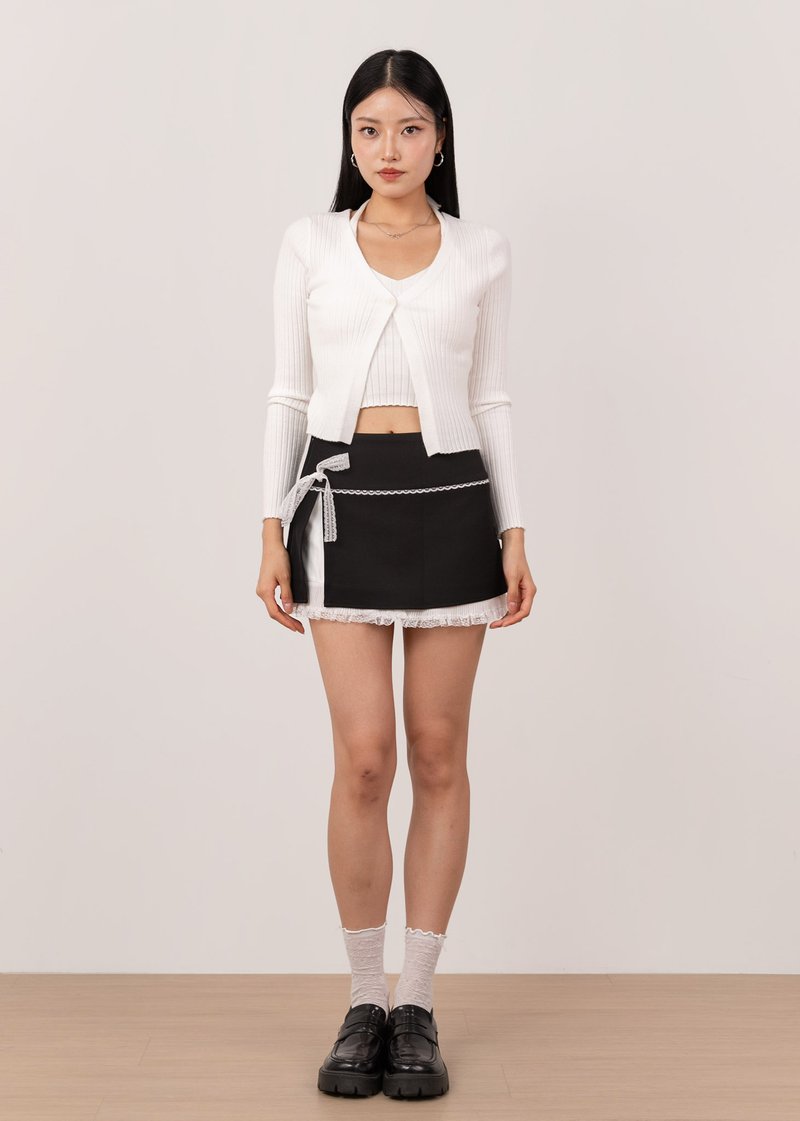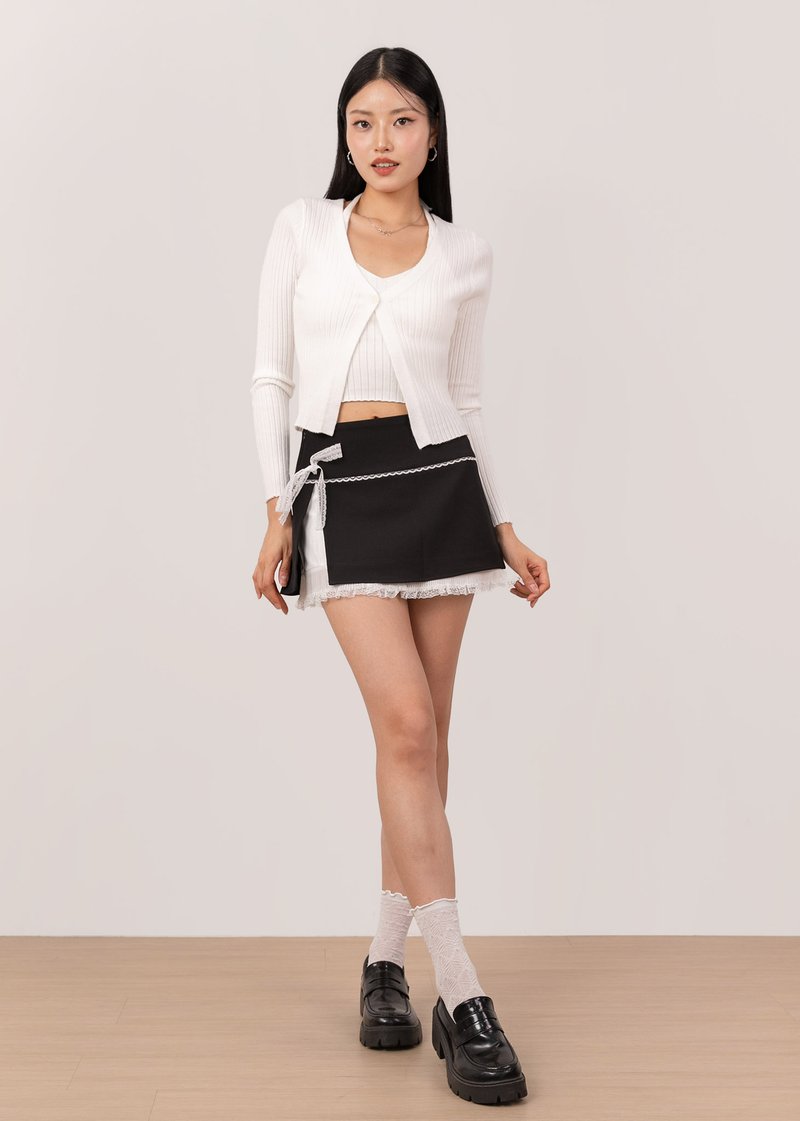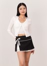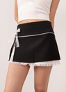 *Skorts features a slight A-line cutting with micro lace pleats details on the hem of the skorts, non functional lace ribbon details in the middle and concealed back zipper