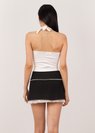 A cascade of lace pleats delicately fringe the hem, framed by a delicate lace ribbon that whispers along the side slit. Designed with precision and a hidden zipper, this mini skort unites soft femininity with confident form.Perfect for soaking up sunshine at brunch, sharing laughs on a picnic, or chasing the breeze on a bike ride.