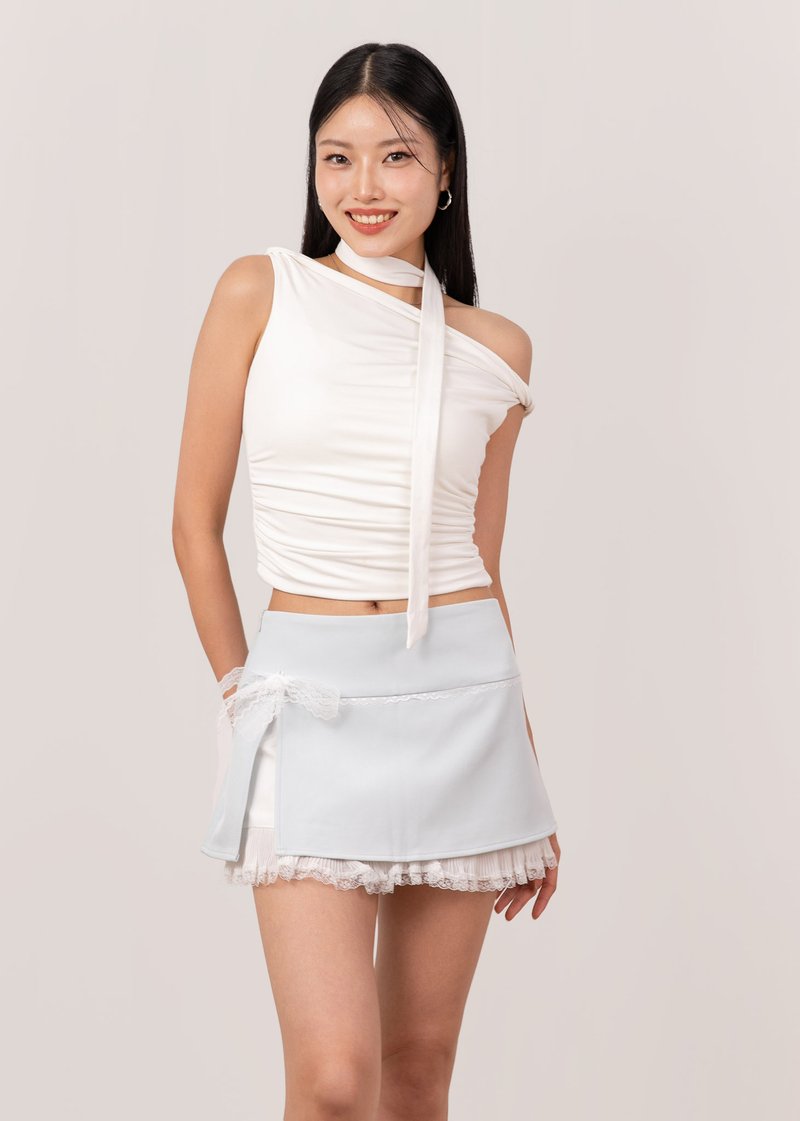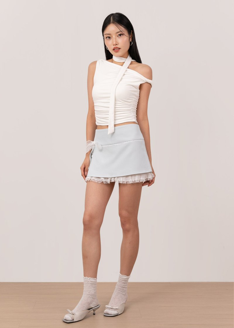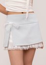 A cascade of lace pleats delicately fringe the hem, framed by a delicate lace ribbon that whispers along the side slit. Designed with precision and a hidden zipper, this mini skort unites soft femininity with confident form.Perfect for soaking up sunshine at brunch, sharing laughs on a picnic, or chasing the breeze on a bike ride.