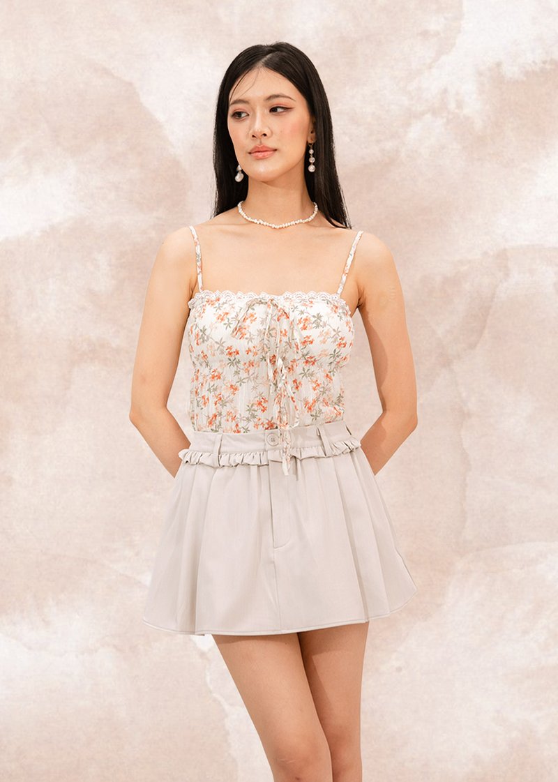 *Meant to be worn mid to high waisted, this skorts features an A-line cutting with ruffle detail on the waistband line, pleats details going down and functional side pockets