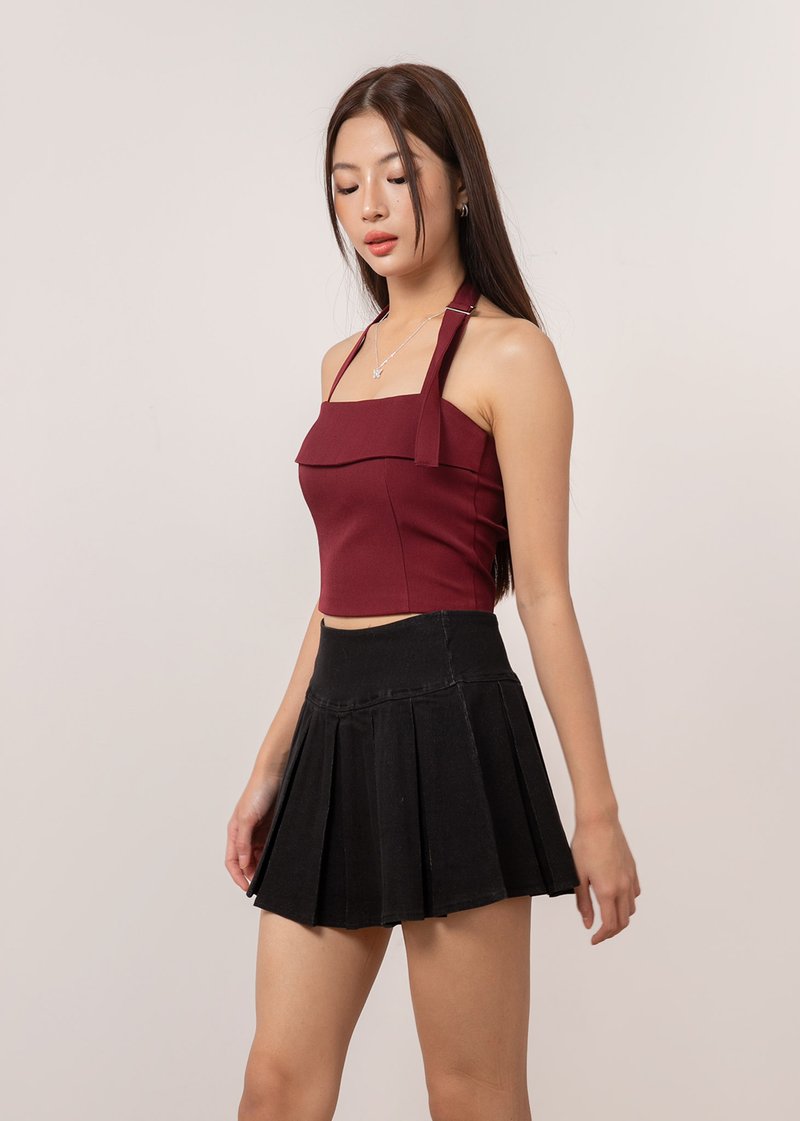 *Features a high waisted fit, pleated design, functional side pockets and concealed side zipper