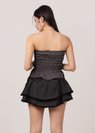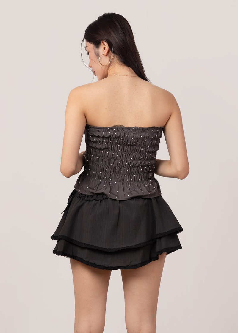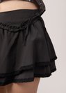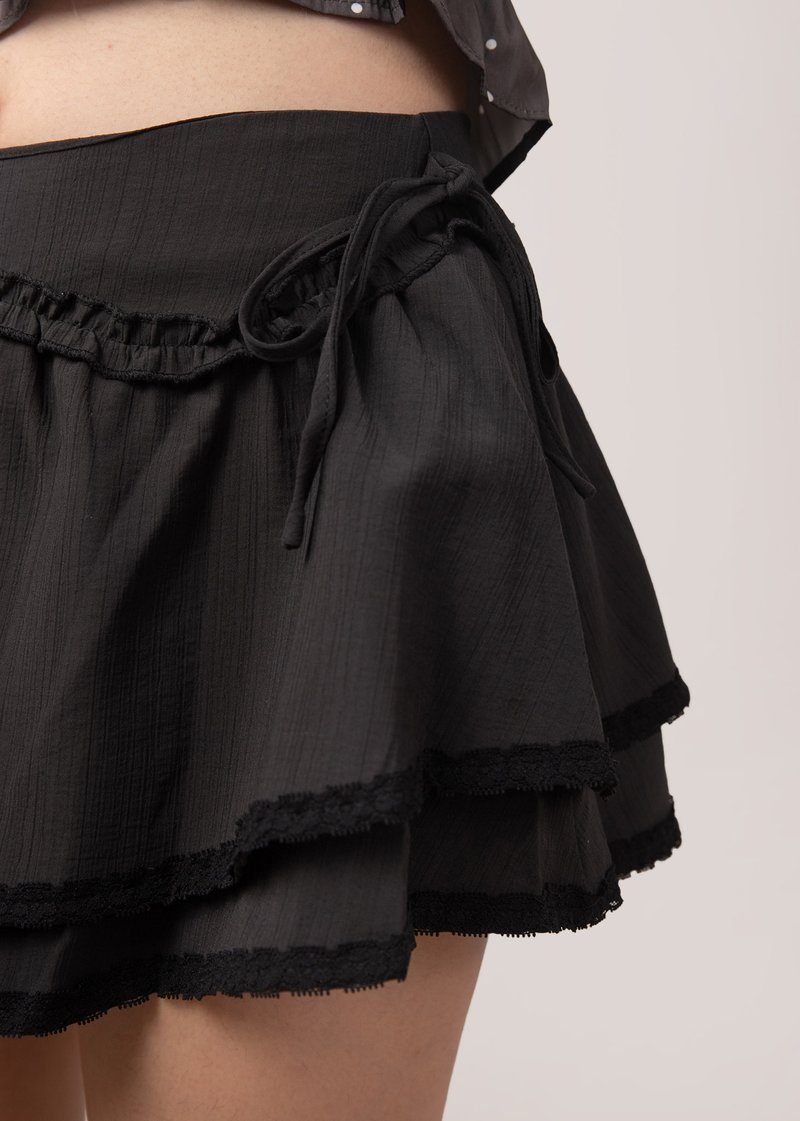 *Meant to be worn mid waisted, this skorts features an A-line cutting with ruffle and a tiered lace detail on the hem of the skorts, decorative tie string at the sides, hidden concealed pockets on the inner lining and concealed side zipper