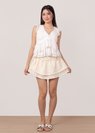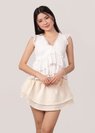 *Meant to be worn mid waisted, this skorts features an A-line cutting with ruffle and a tiered lace detail on the hem of the skorts, decorative tie string at the sides, hidden concealed pockets on the inner lining and concealed side zipper