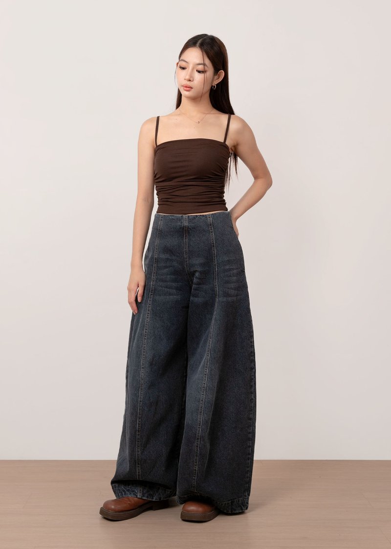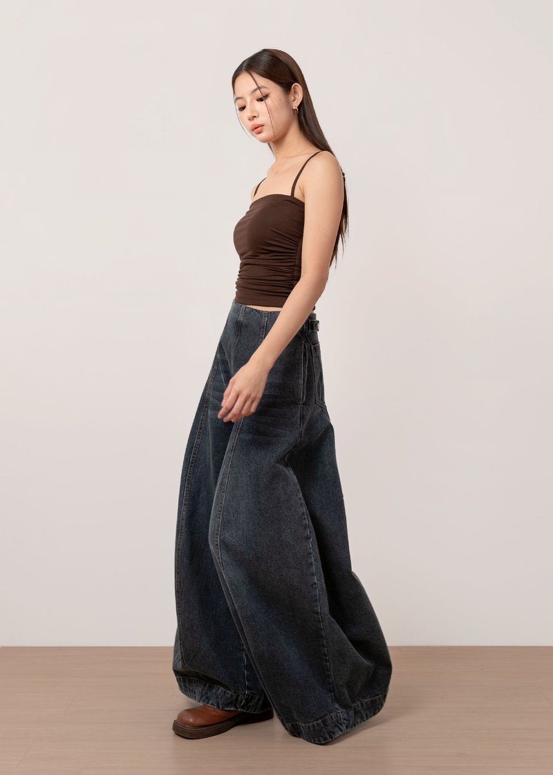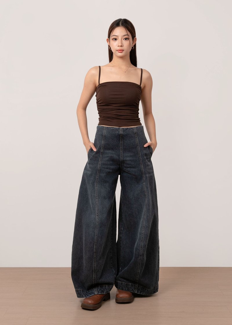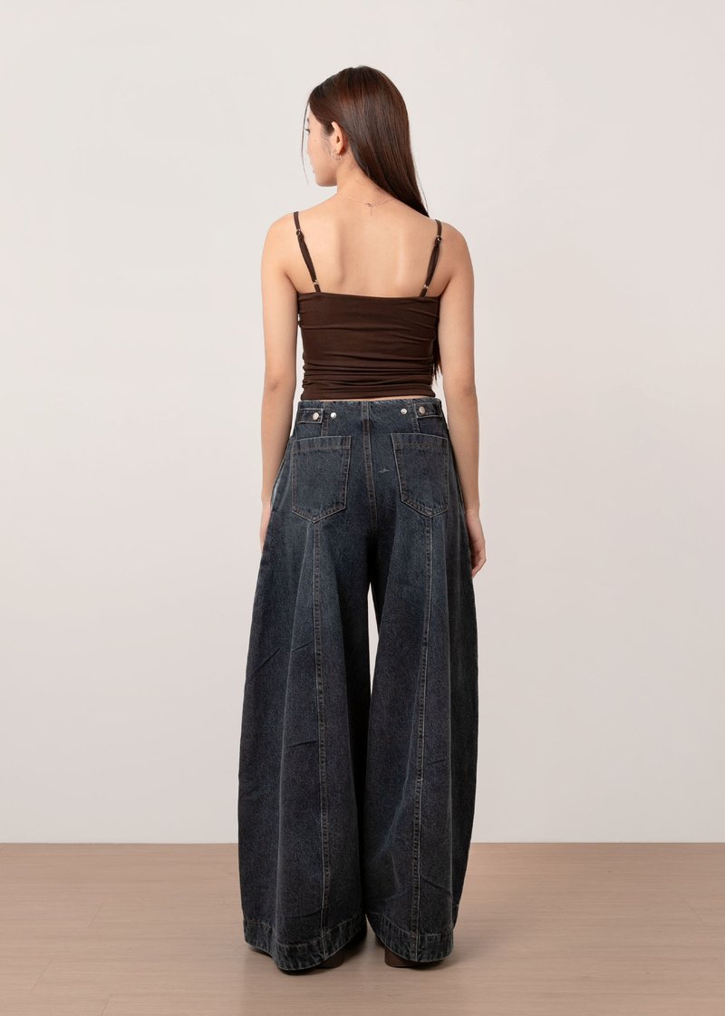 *Features a wide legged high waisted fit with panelling details all the way down, a side zipper, functional side and back pockets, our signature adjustable buttons to tighten the waist (0.5inch each side)