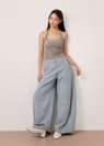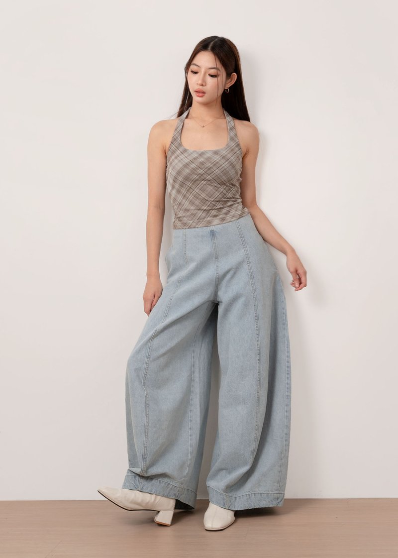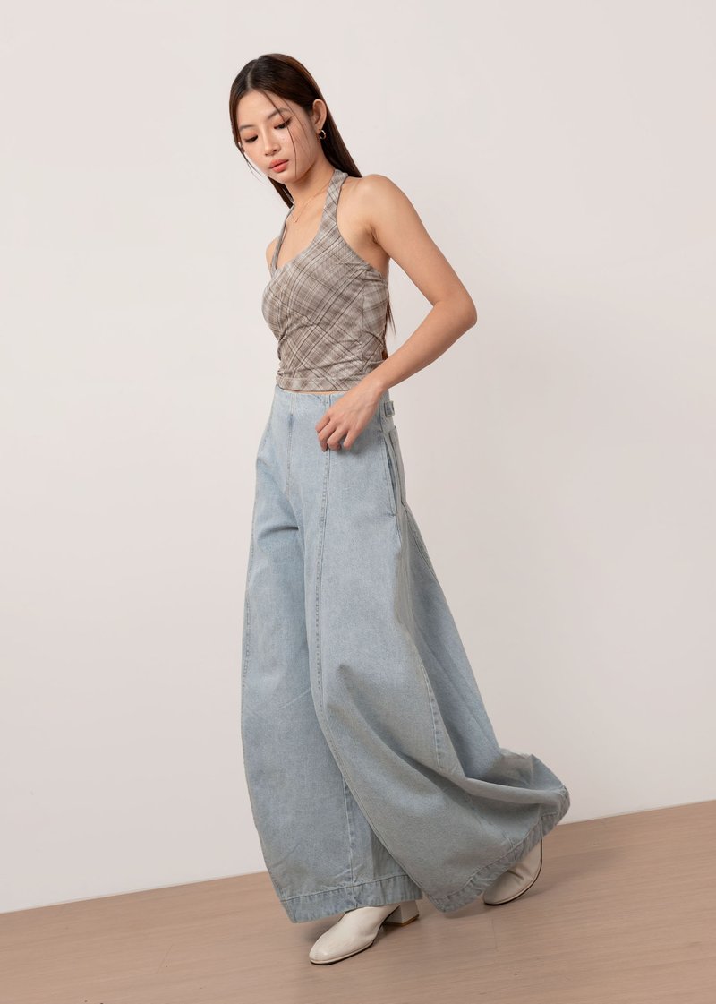 *Features a wide legged high waisted fit with panelling details all the way down, a side zipper, functional side and back pockets, our signature adjustable buttons to tighten the waist (0.5inch each side)