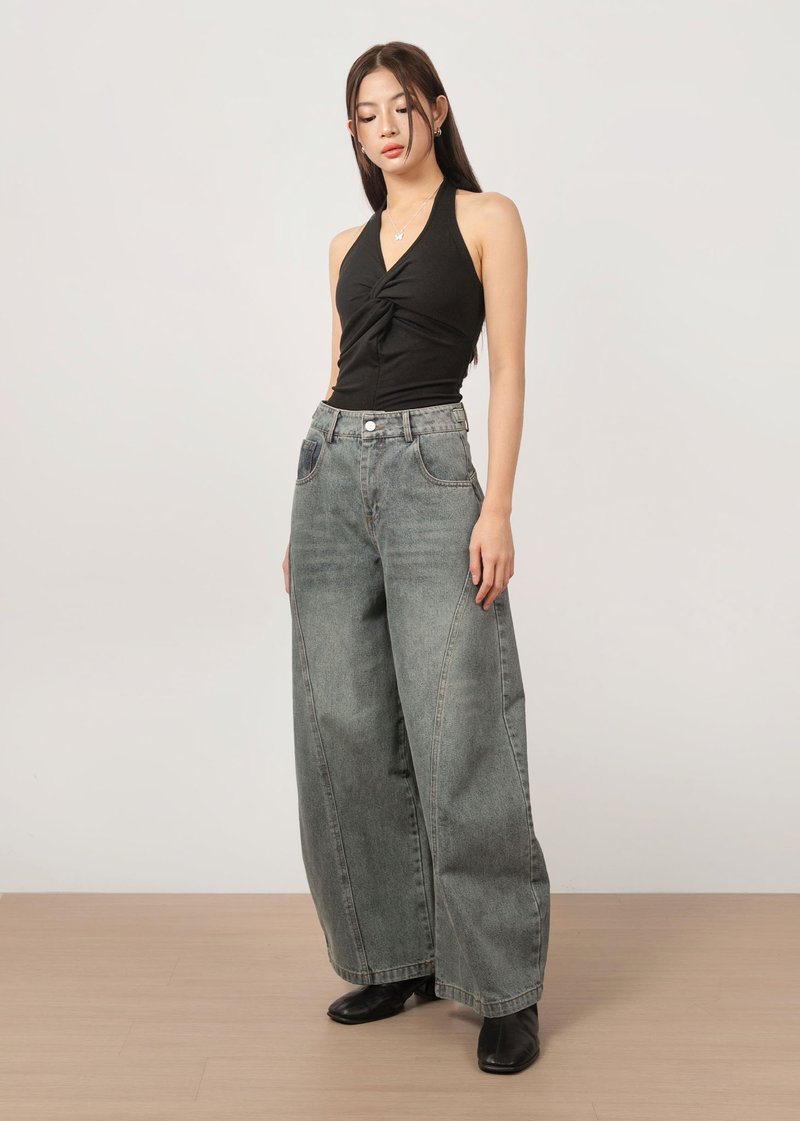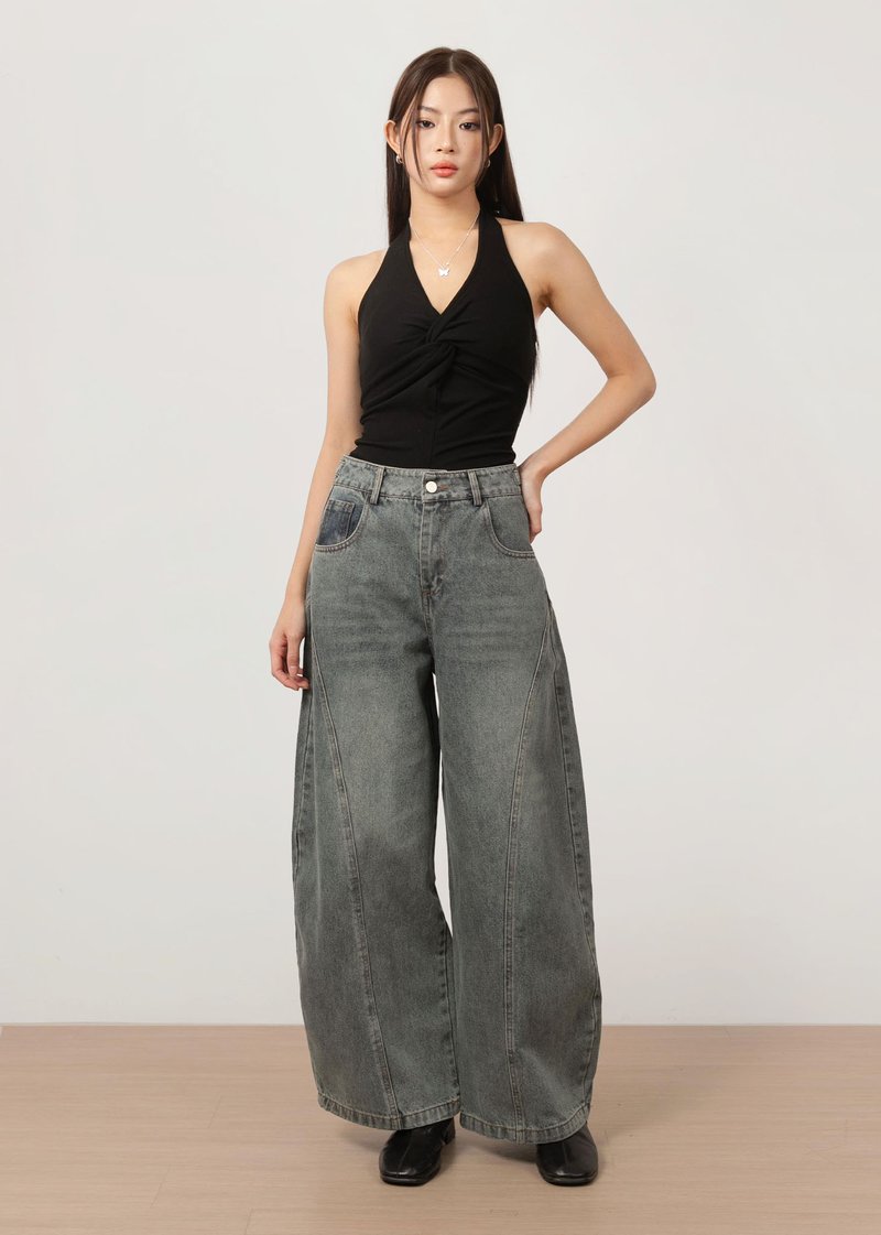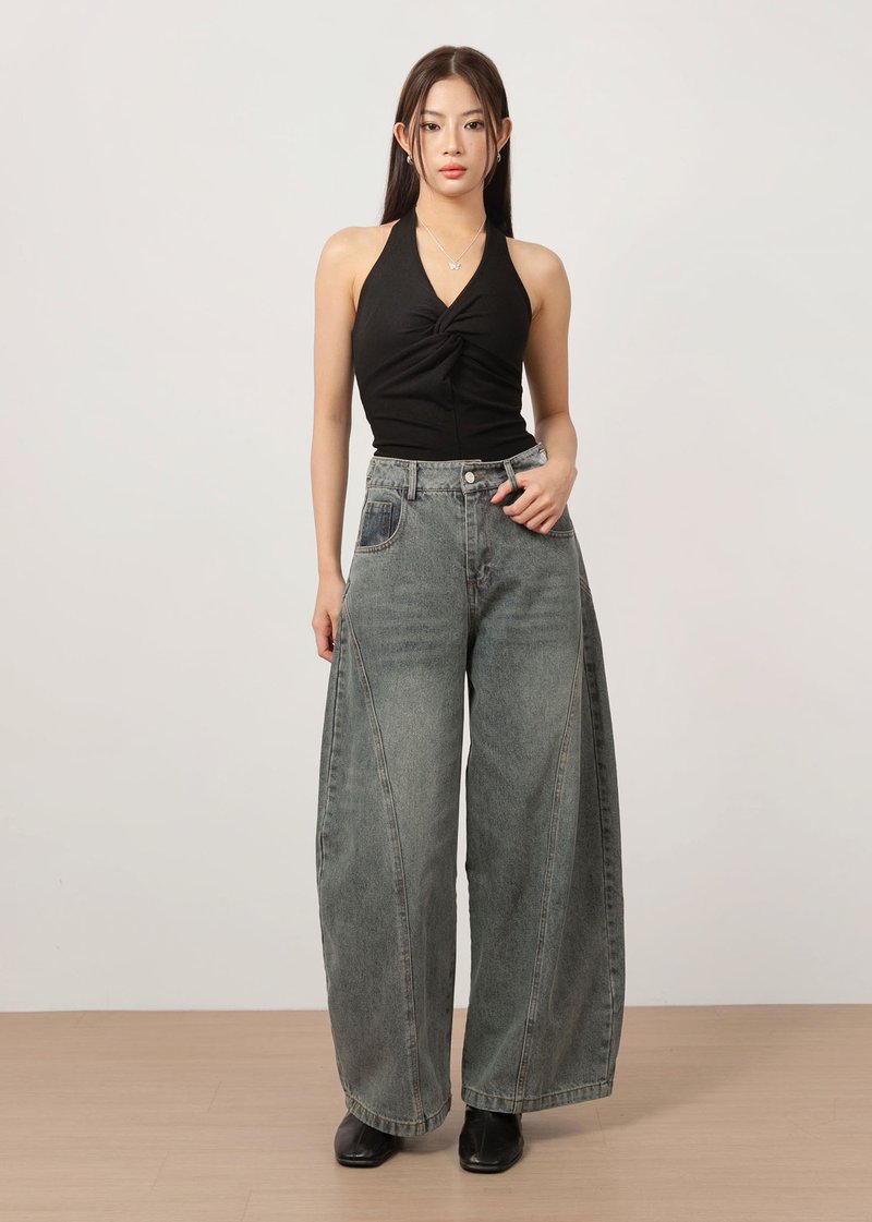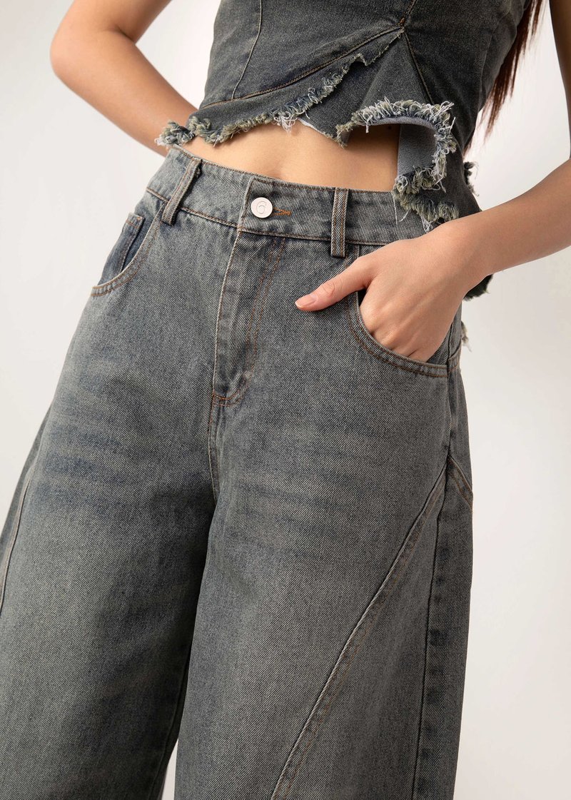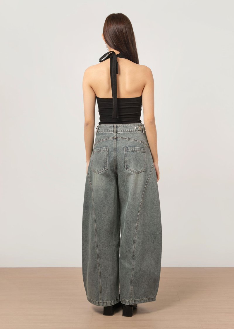 Built in structured denim, the barrel cut creates a soft, rounded shape with a strong foundation. Designed with a mid-high rise, functional pockets, and adjustable waist buttons for added ease. An everyday piece that feels considered without trying too hard.