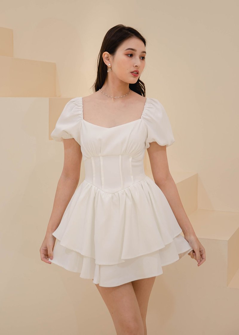 *Comes with concealed back zip, side pockets, elastic sleeves which can be worn 2 ways, tier hem with corset details at the front