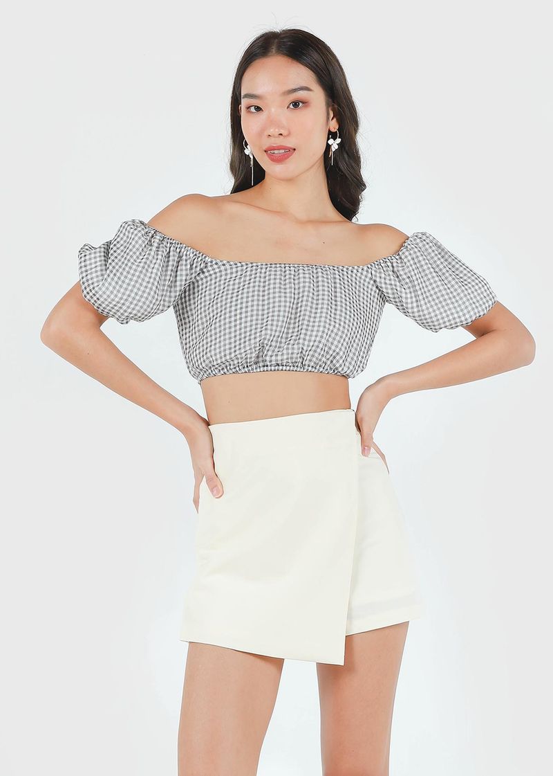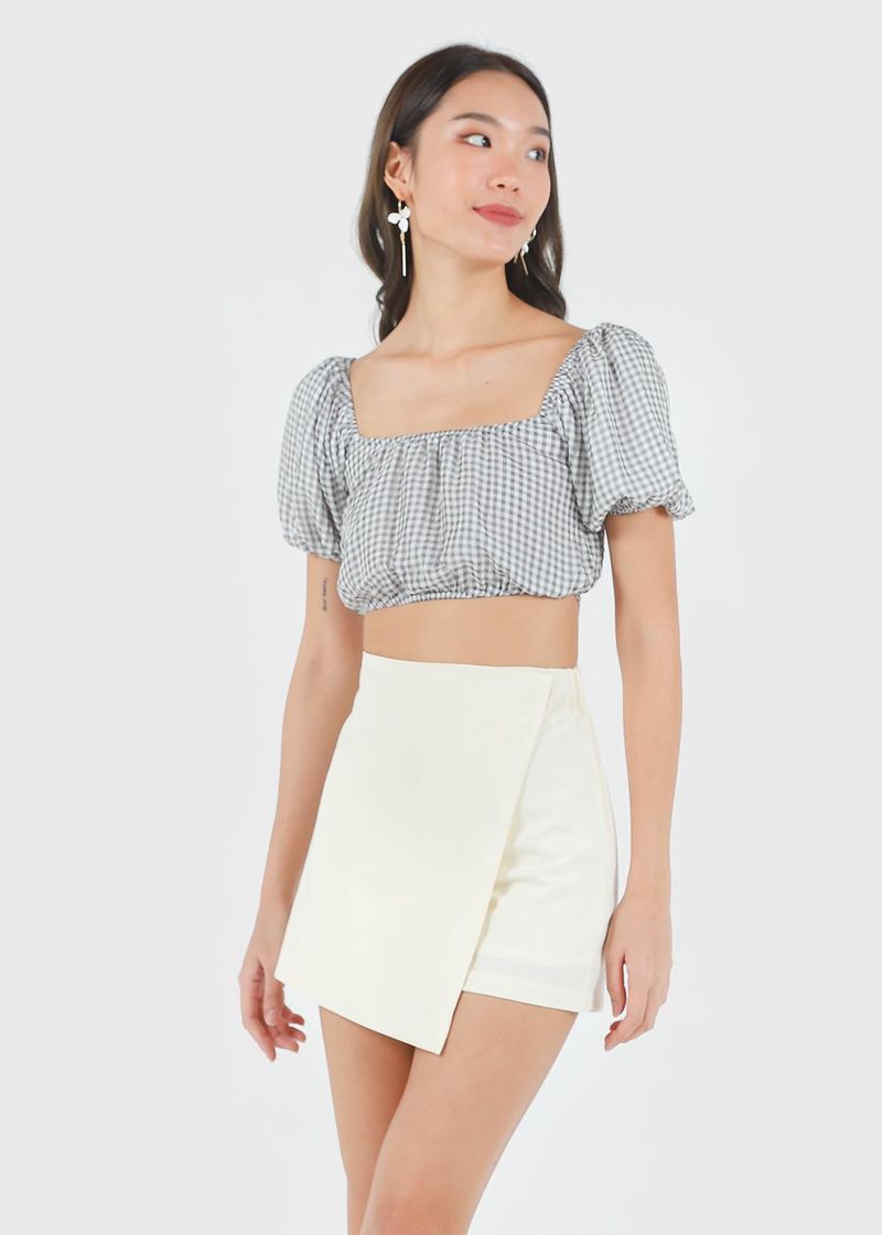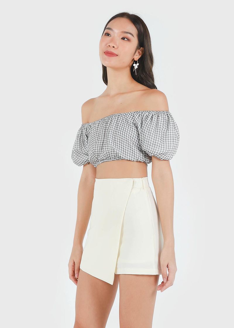 Kayen Gingham Puffy 2 Way Top in Black #6stylexclusive