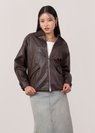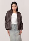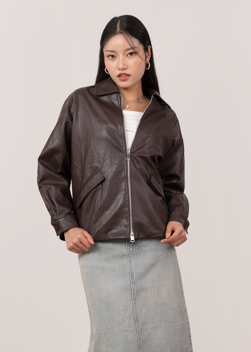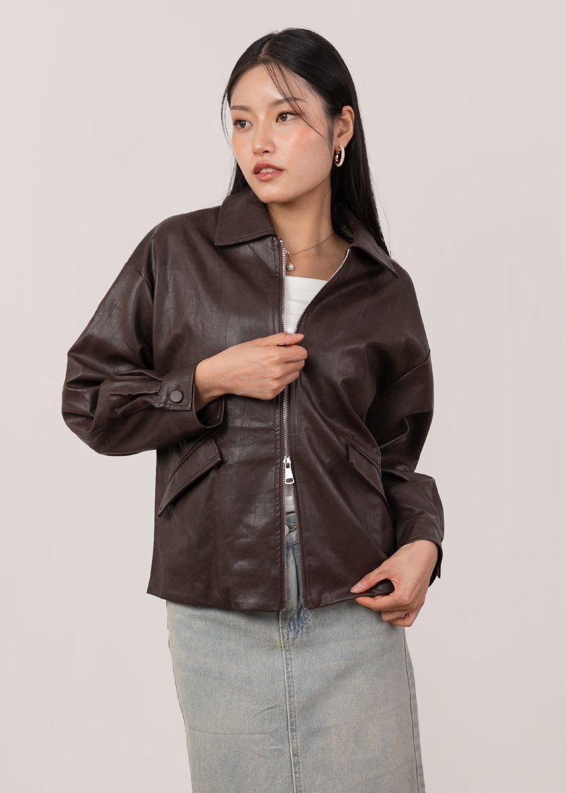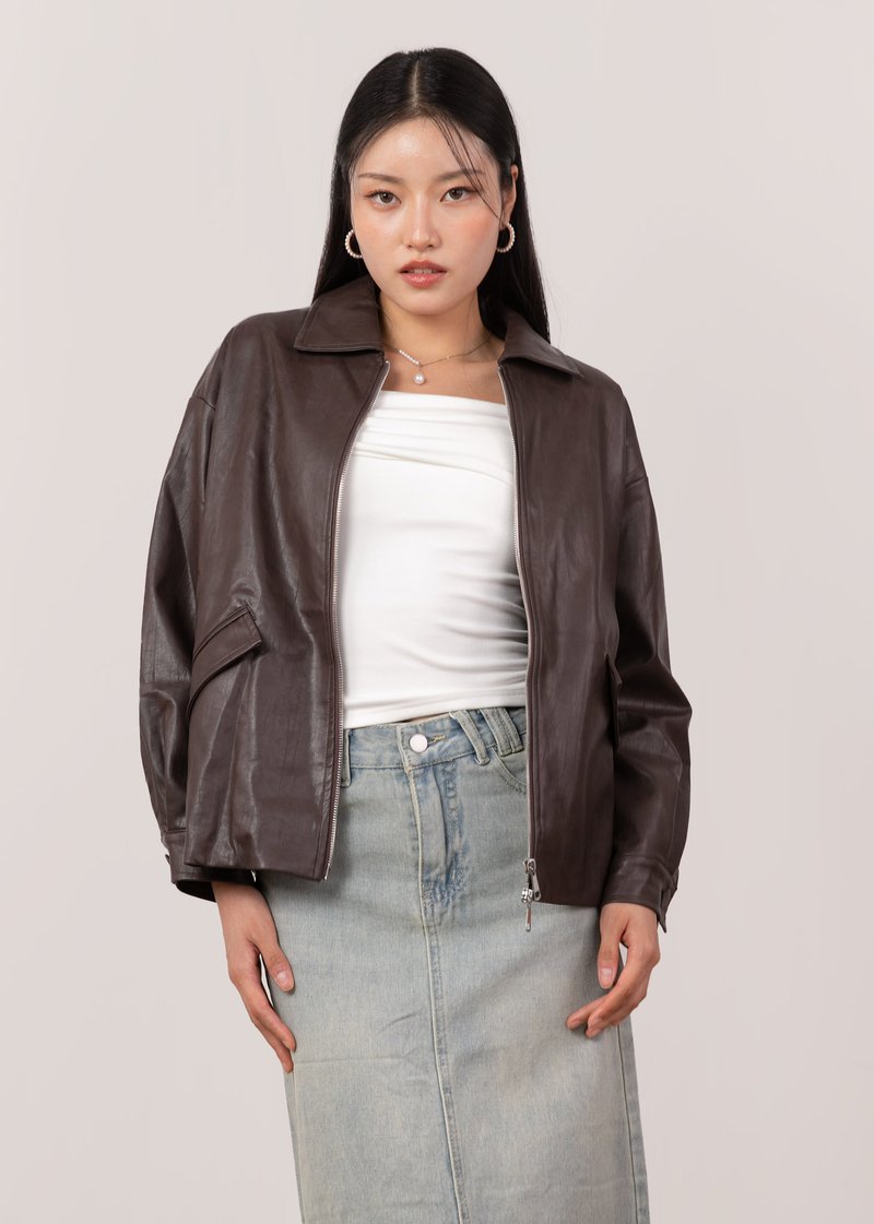 Blackout 2 Way Zipper Leather Jacket in Charcoal Brown