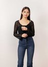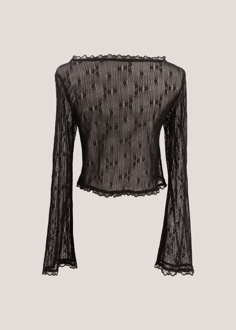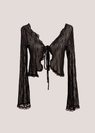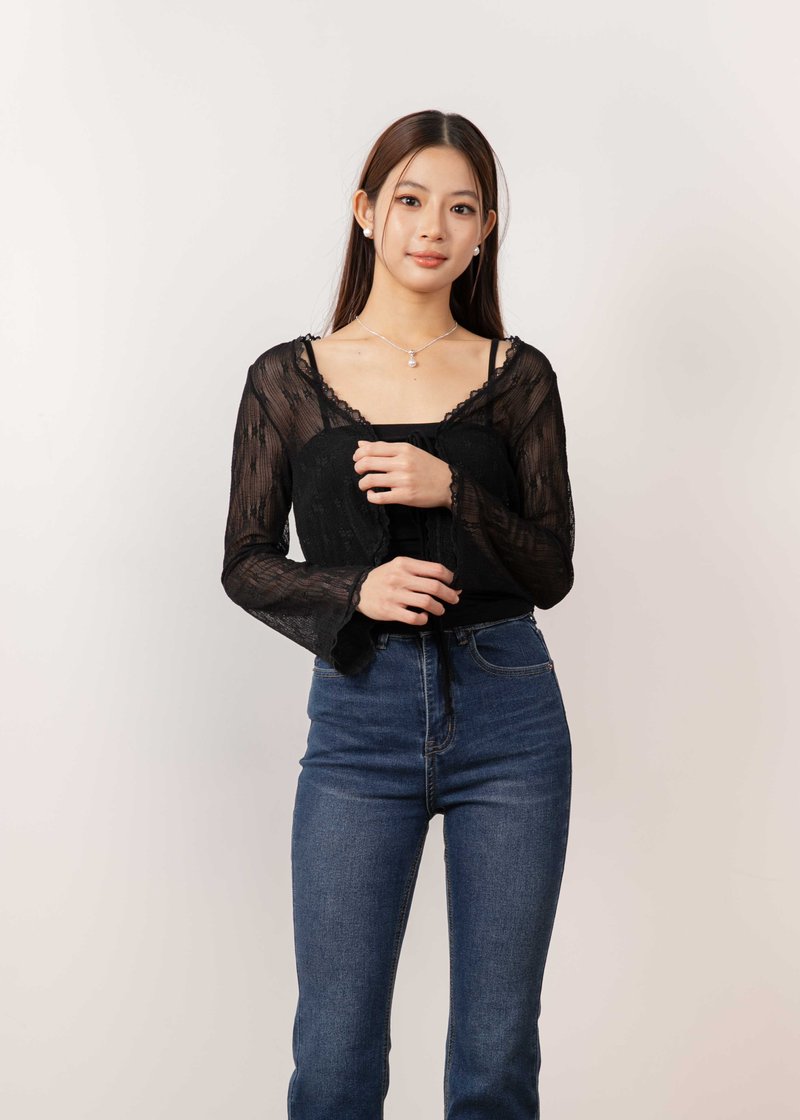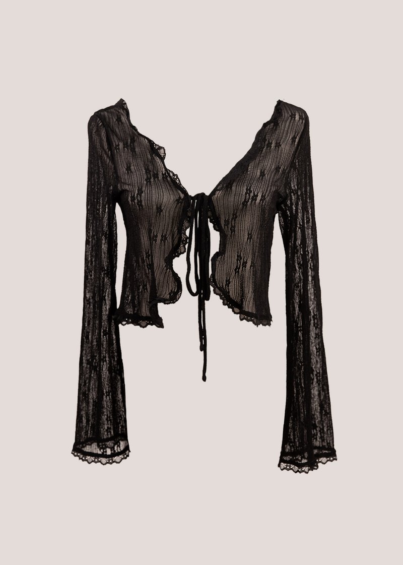 *Features a tie string in the middle, a slight bell sleeves and lace trimmings on the neckline and the hem of cardigan