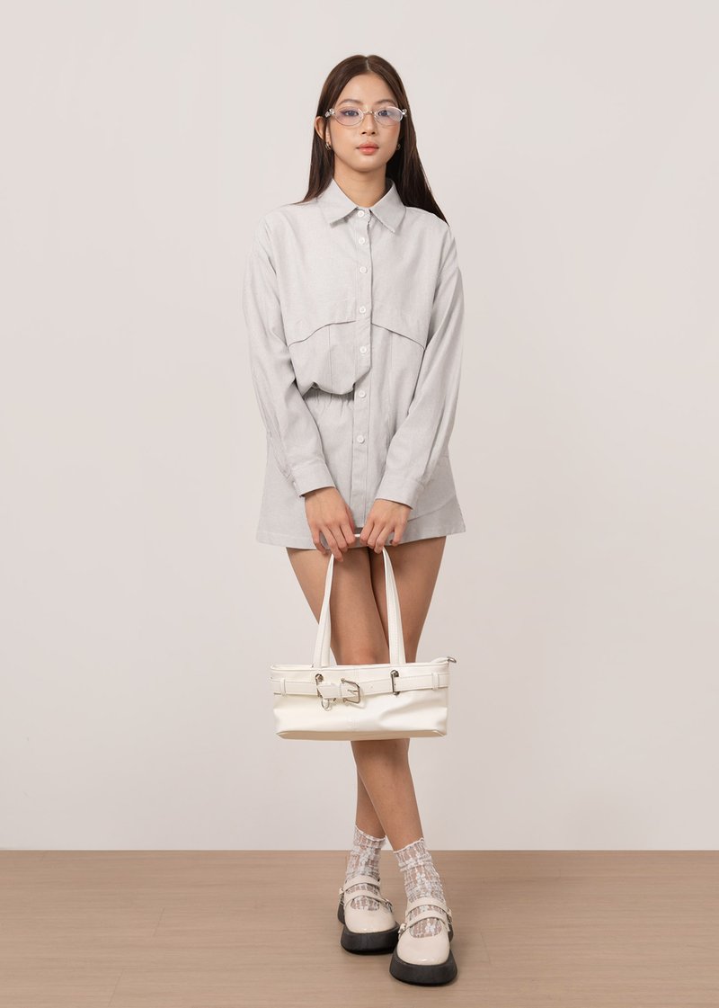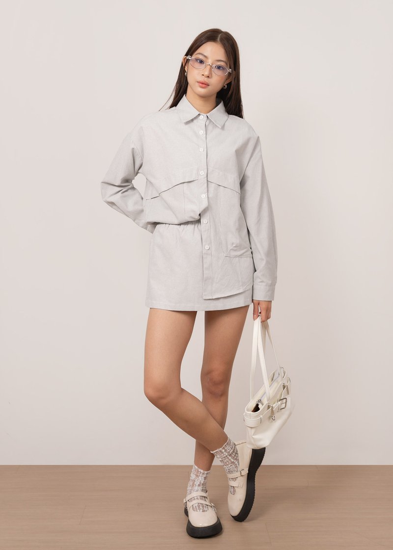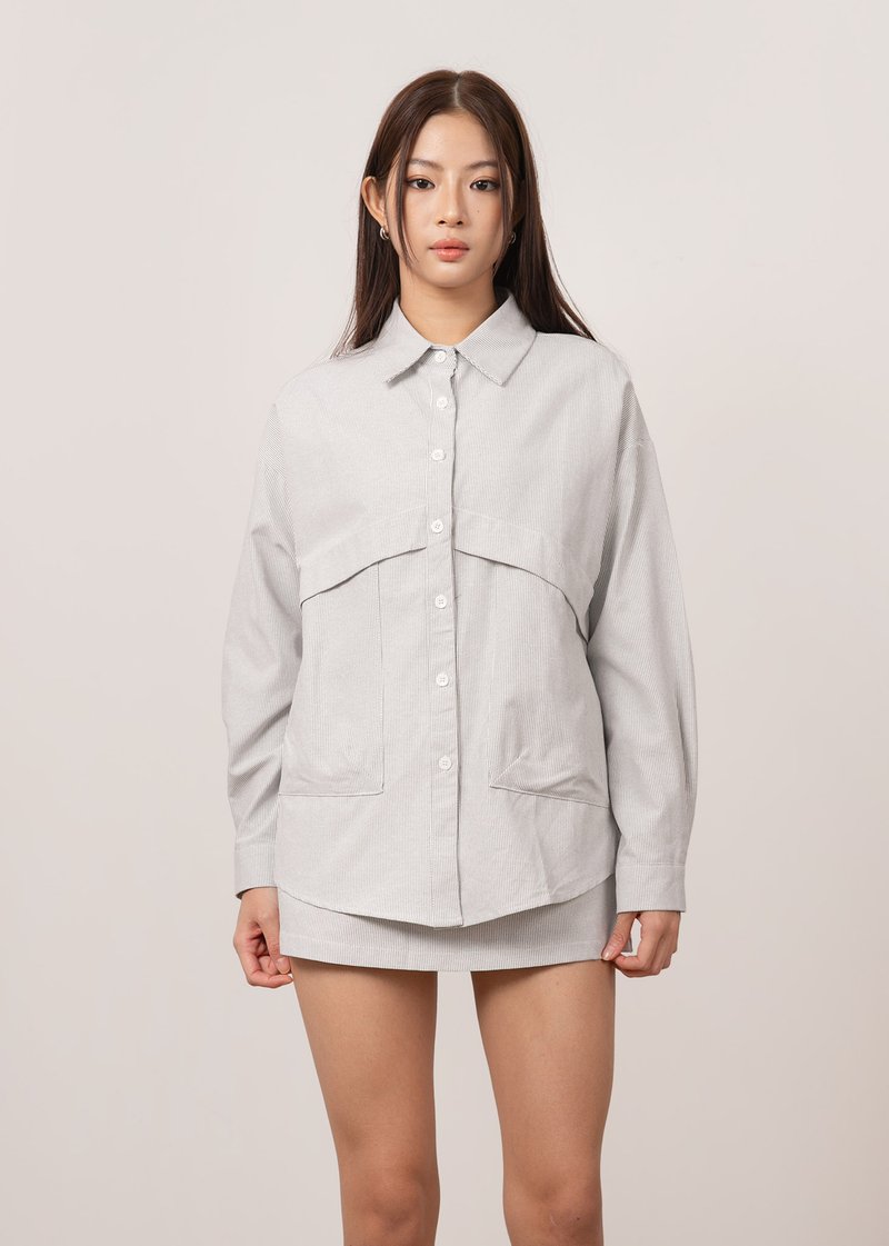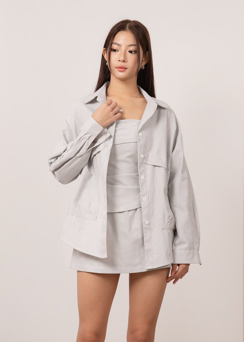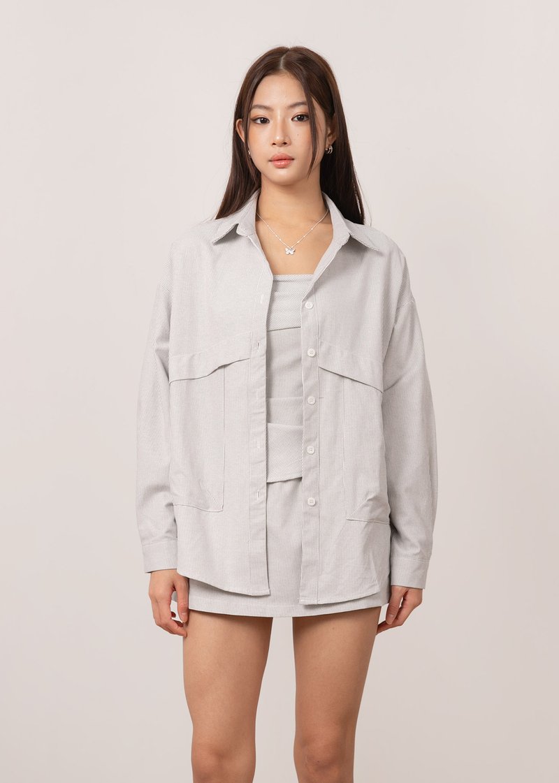 *Features an oversized look, functional front pockets and functional buttons down