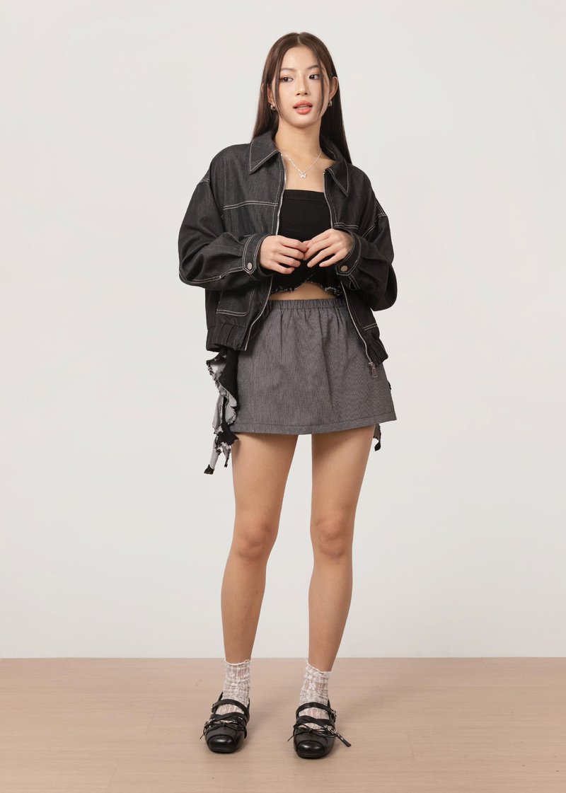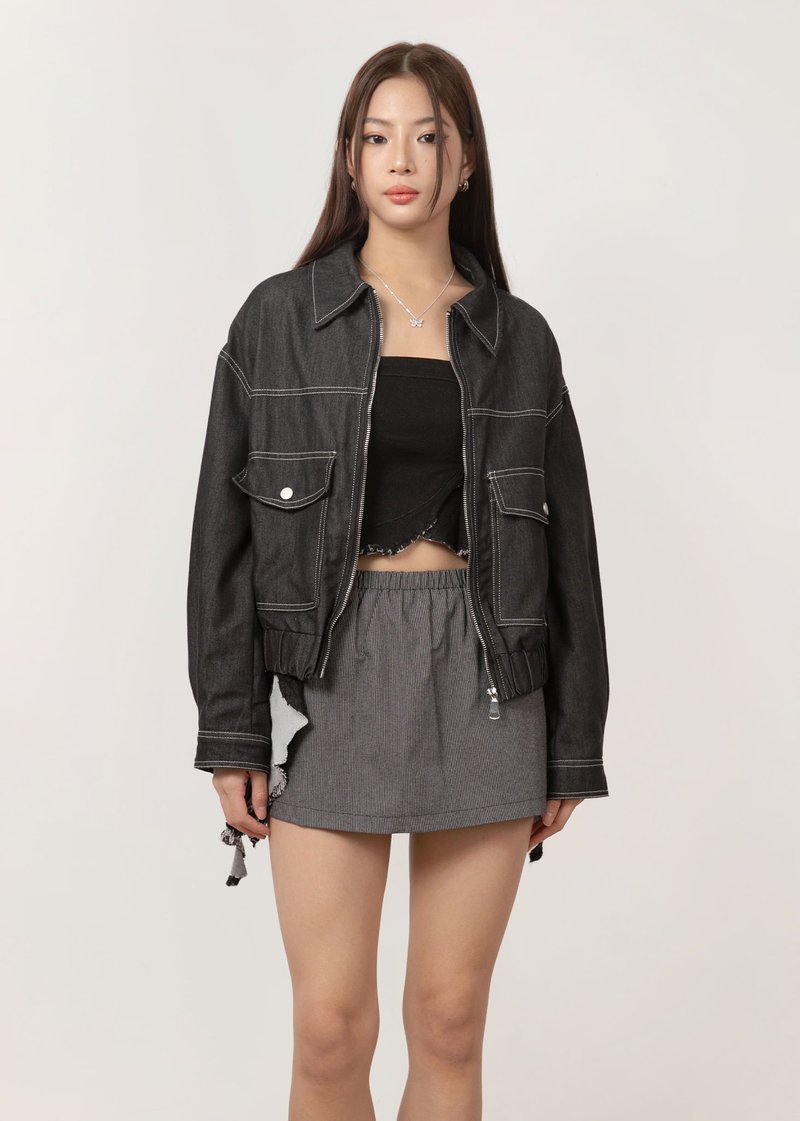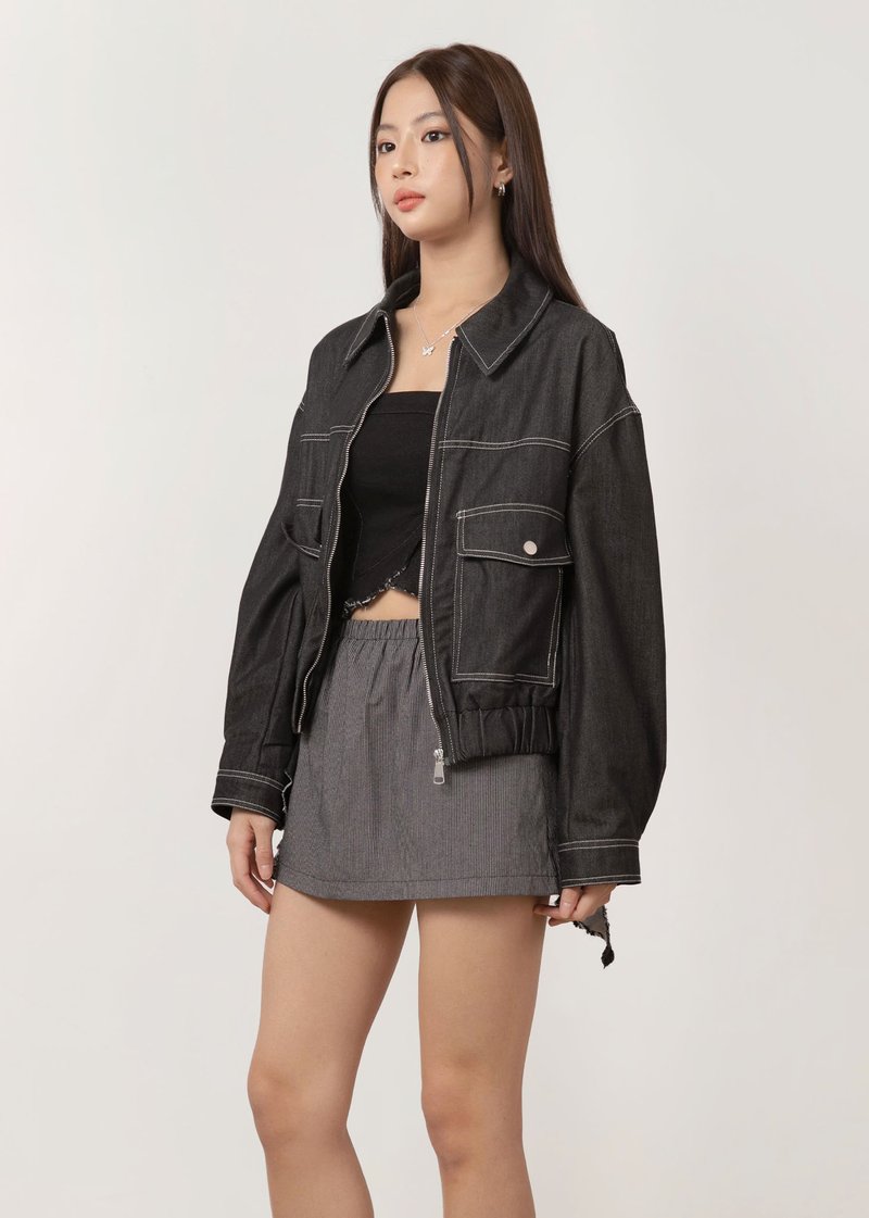 *Features a slight oversized look, functional front pockets and concealed inner pockets with functional zip down