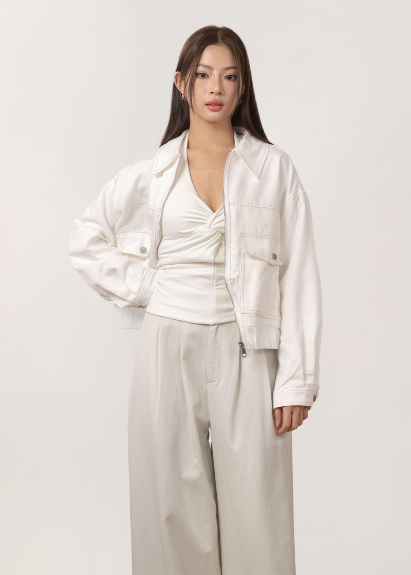 *Features a slight oversized look, functional front pockets and concealed inner pockets with functional zip down