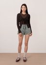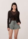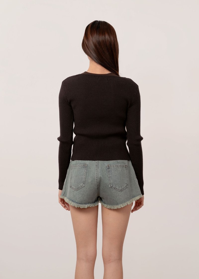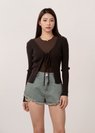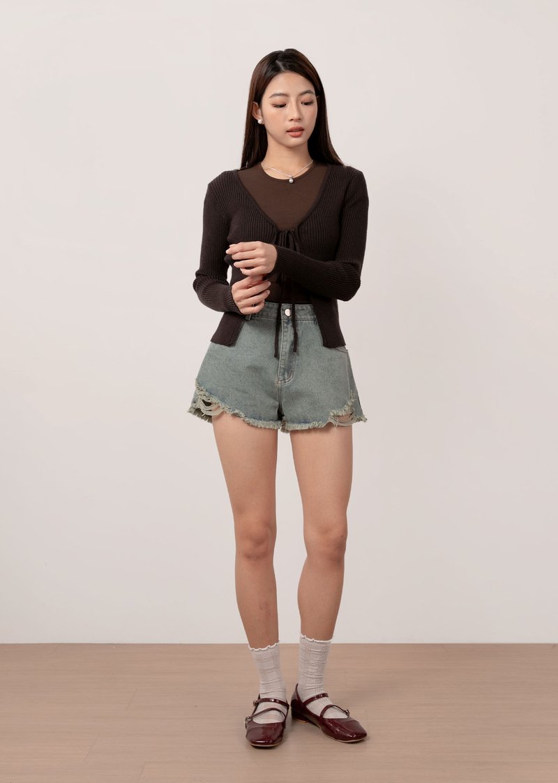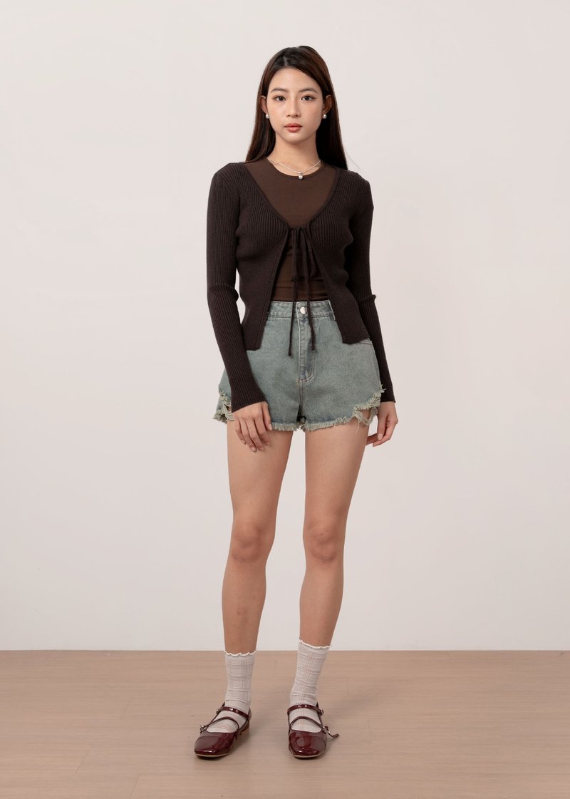 *Features a regular length fitted cardigan with functional tie string in the middle and v neckline cutting