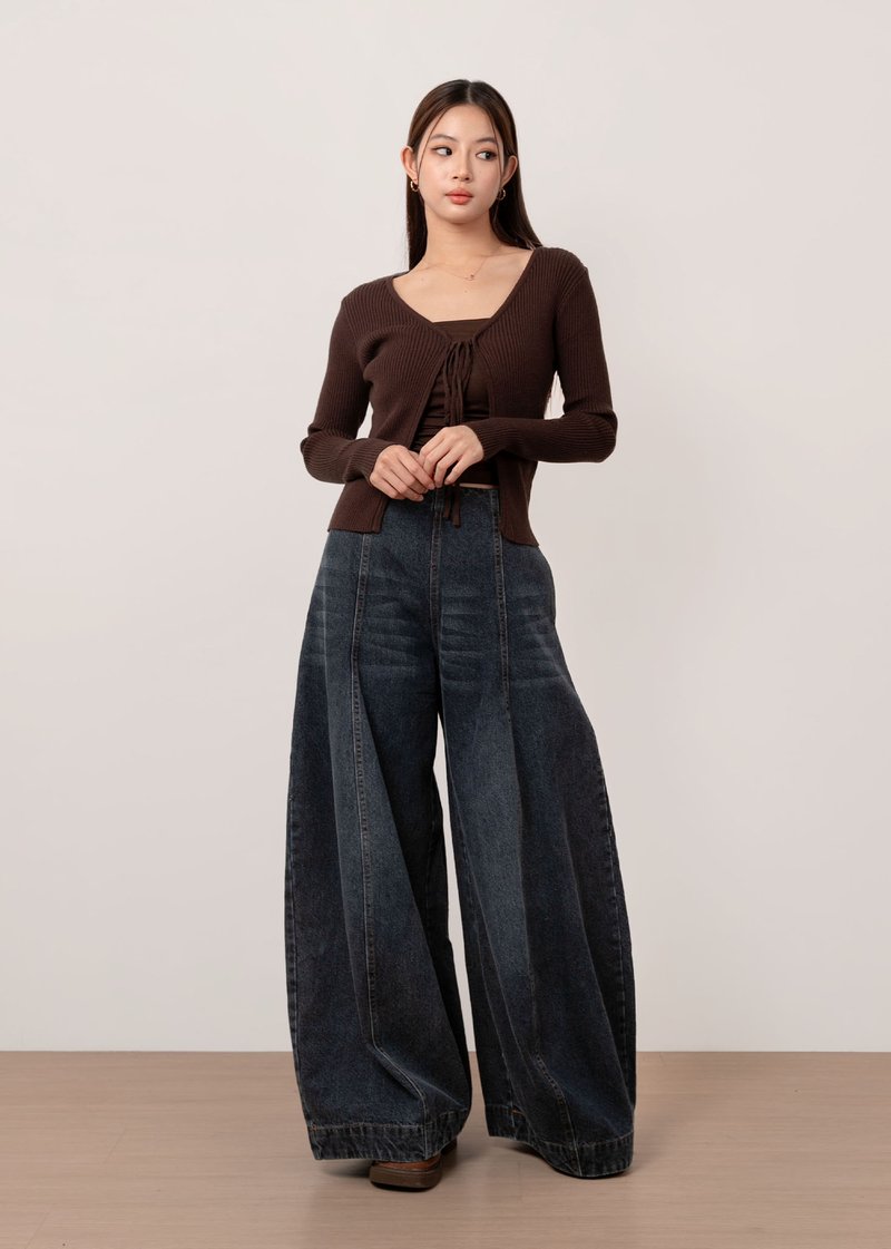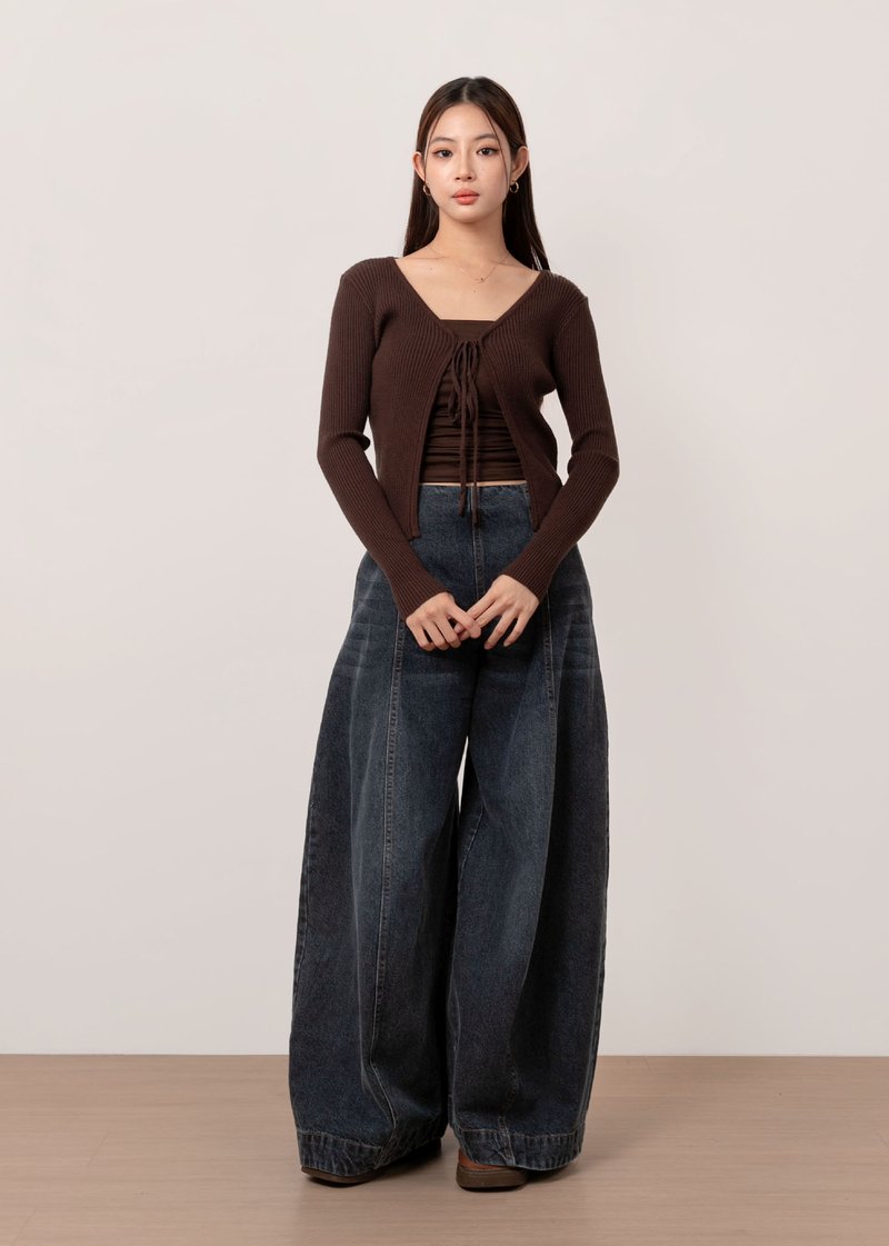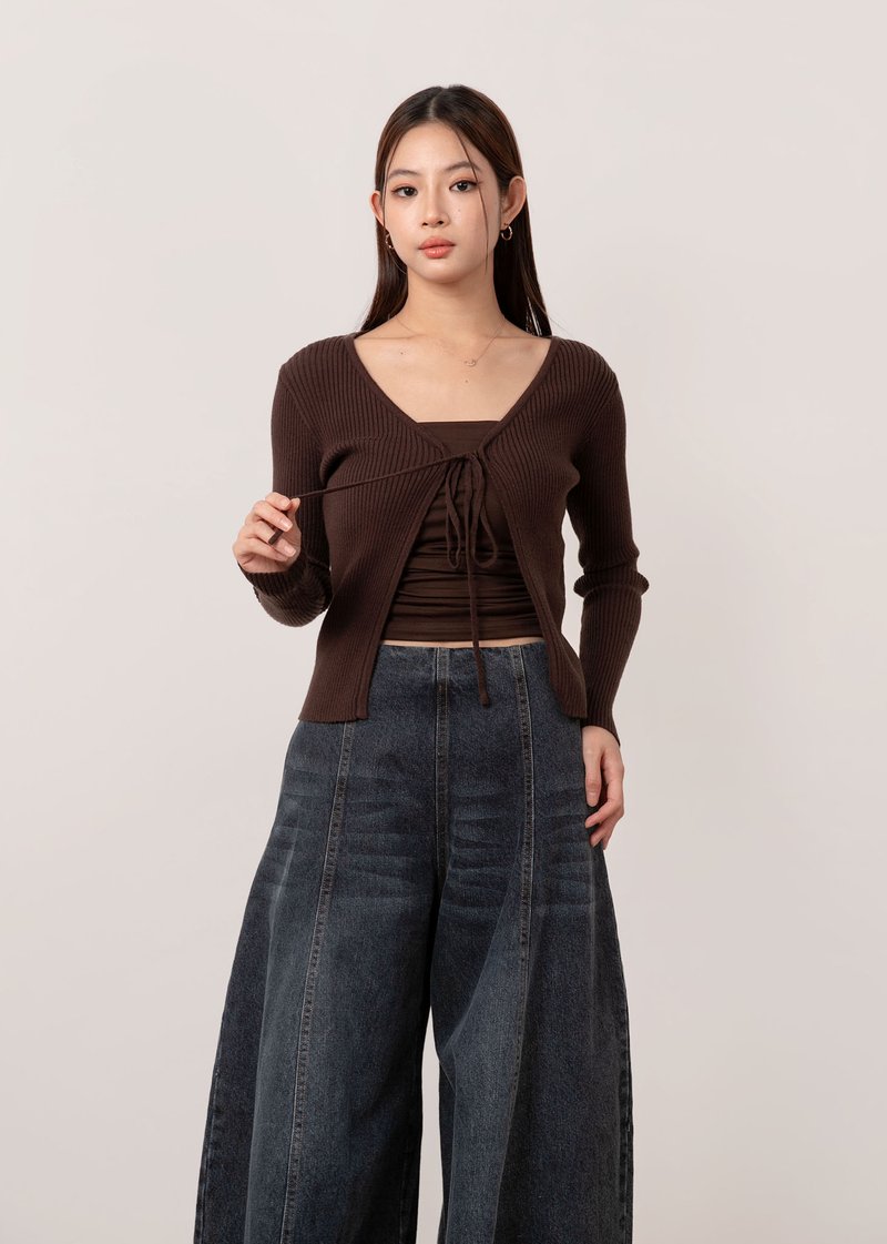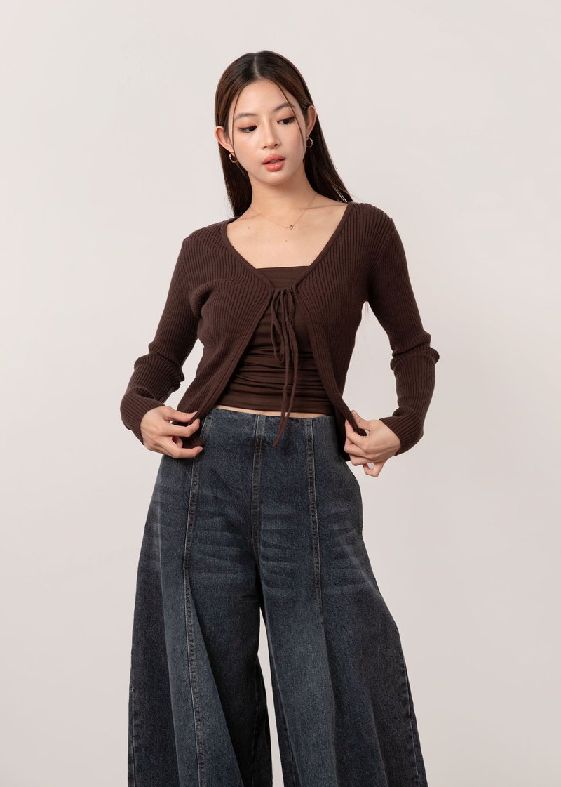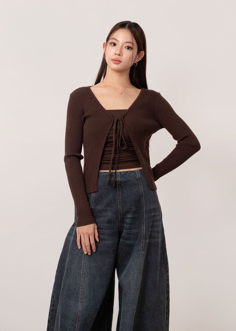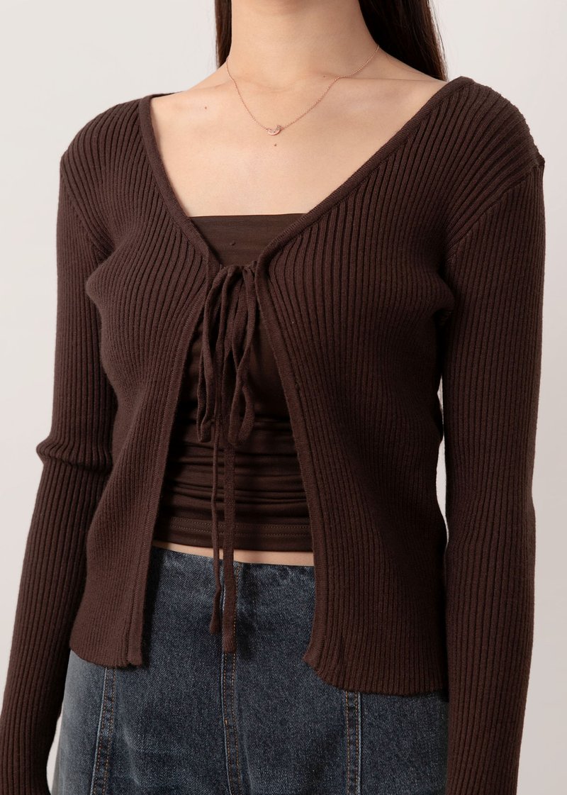 Snowdrop Tie String Cardigan in Mocha Brown