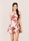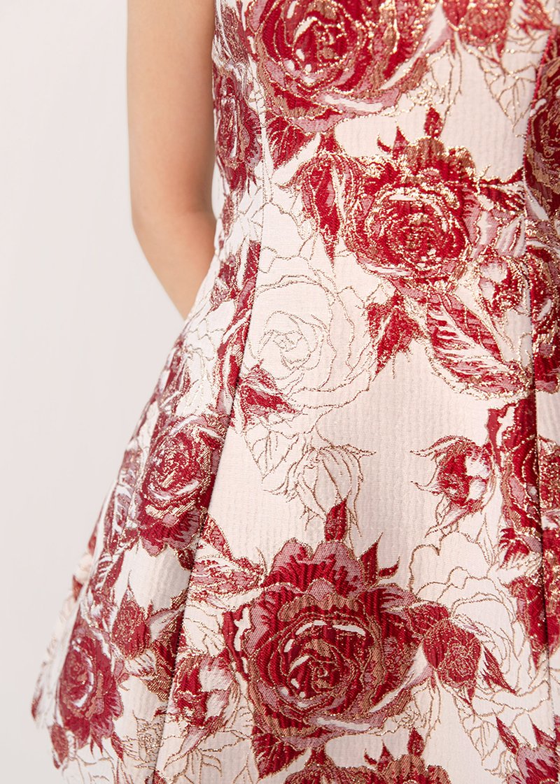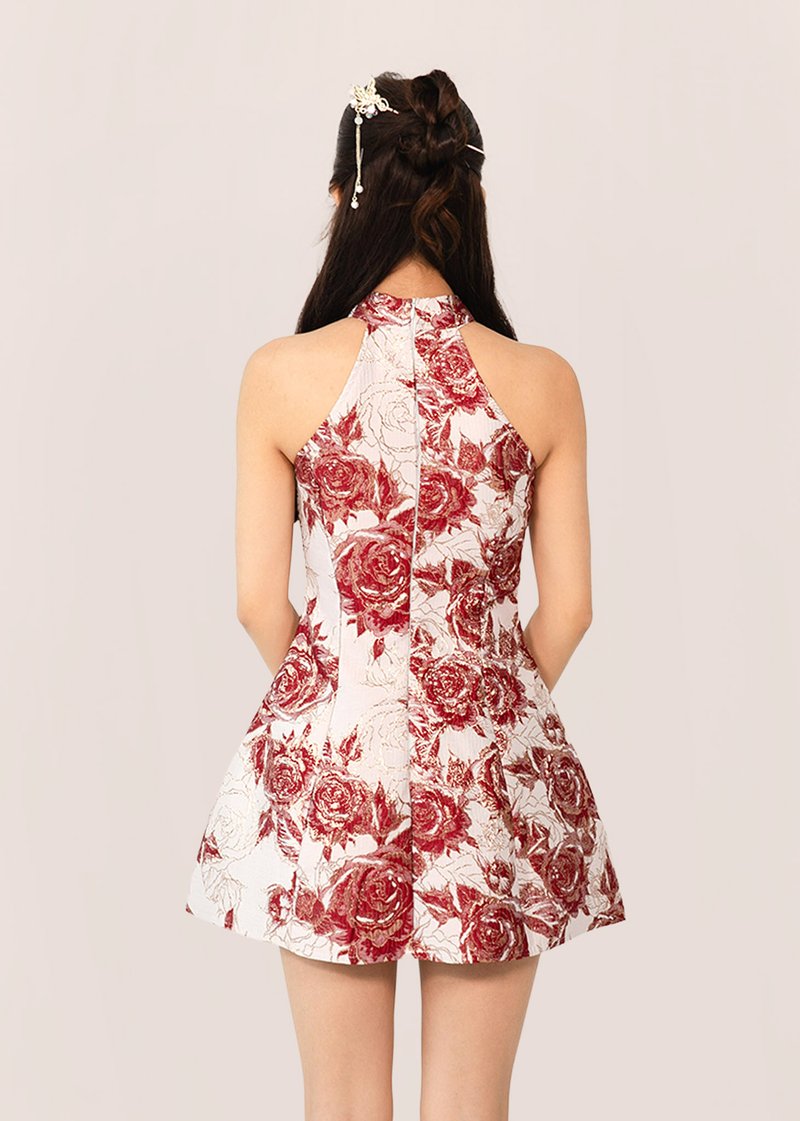 琳 (Lín–Refined Beauty) Blooming Skater Mini Dress in Ruby Red