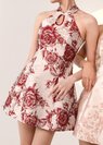 *Features a skater cutting with qipao halter details, pearl embellishments, functional side pockets and concealed back zipper