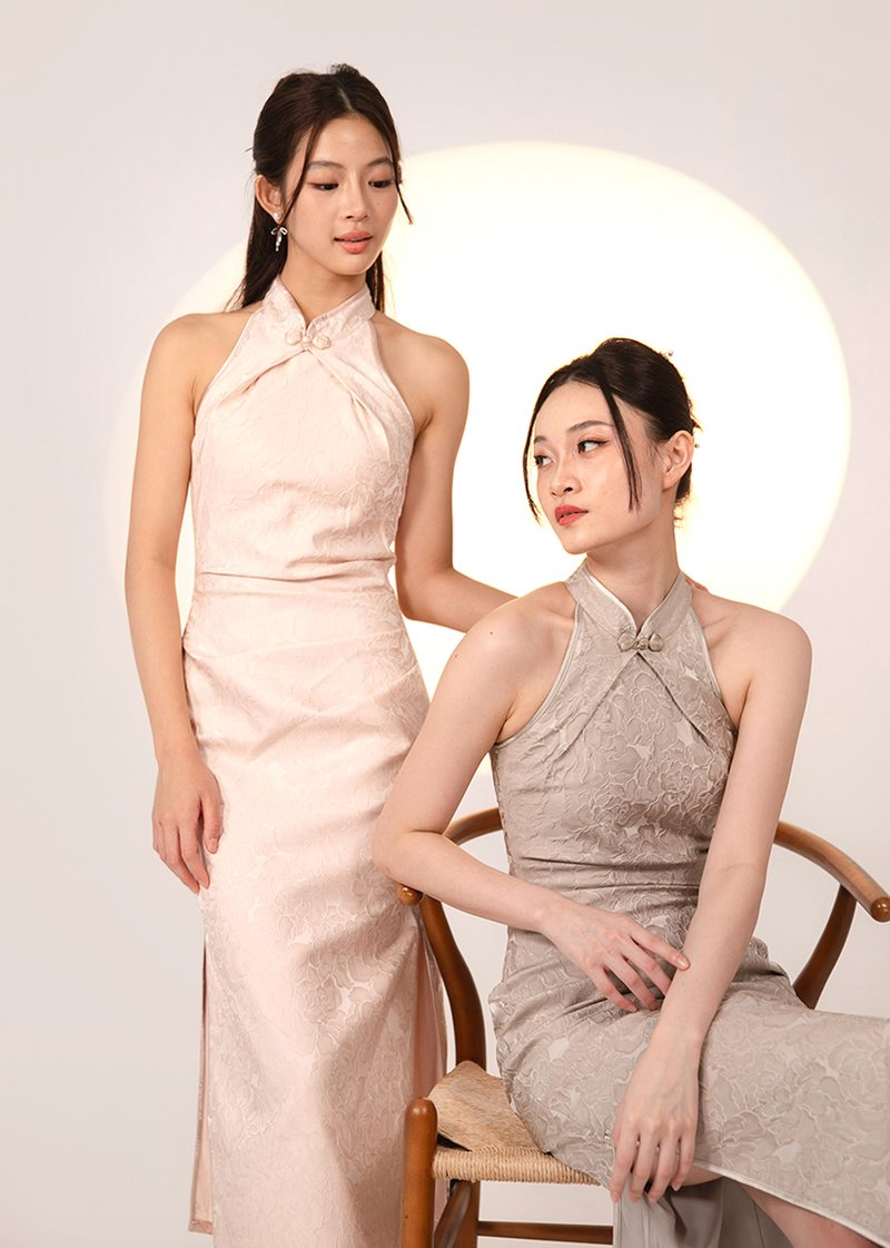 璇 (Xuán–Elegance) Midi Qipao Dress in Light Pink