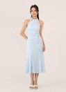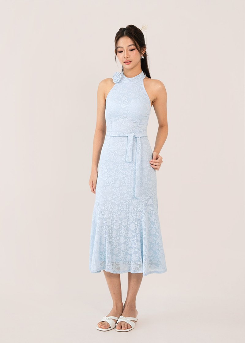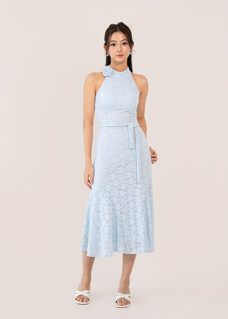 禄 (Lù–Prosperity) Qipao Midi Dress With Rose in Sky Blue