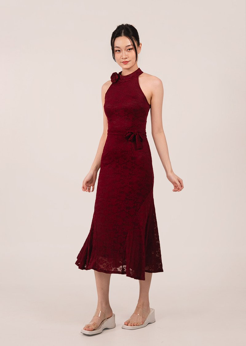 Give your wardrobe a permanent floral flourish with the 禄 (Lù–Prosperity) a versatile lace masterpiece that transitions effortlessly from festive celebrations to romantic date nights. Its signature removable rose allows you to customise your silhouette, dialing the drama up for wedding dinners or keeping it sleek for an evening out. Styled with strap heels and a minimalist clutch, this dress proves that elegance is always in full bloom.