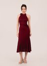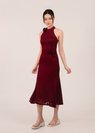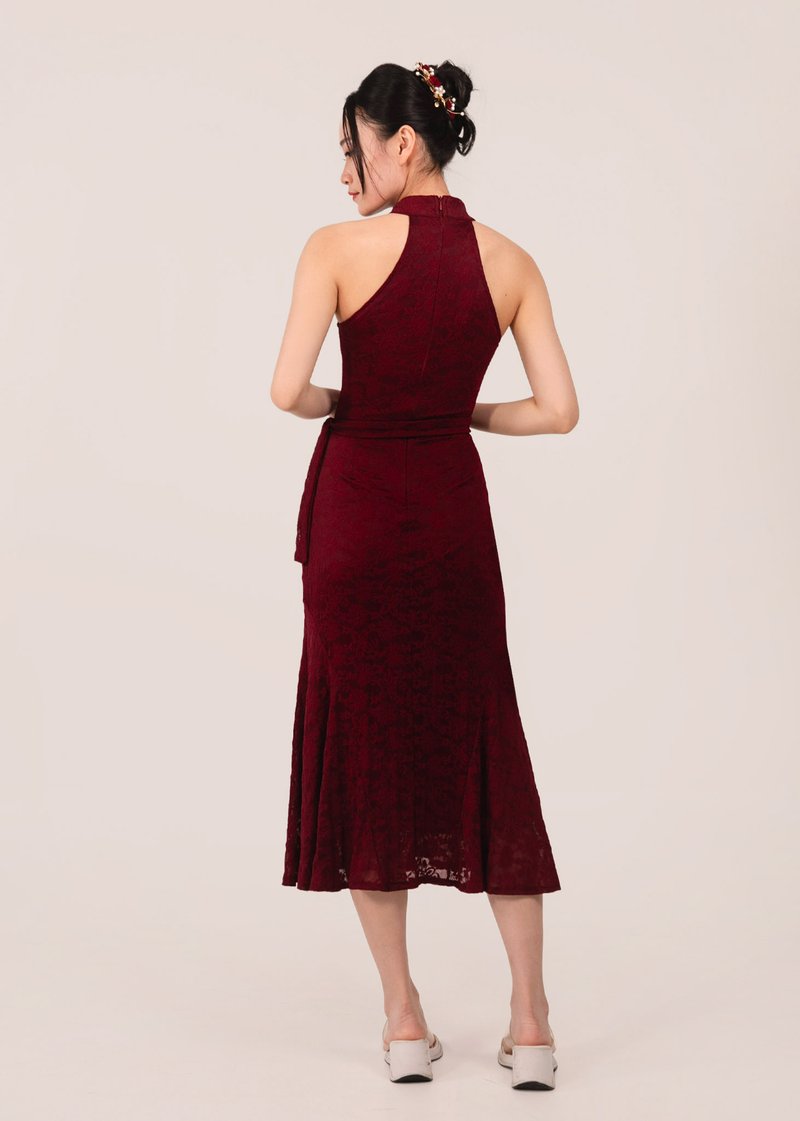 禄 (Lù–Prosperity) Qipao Midi Dress With Rose in Wine Red