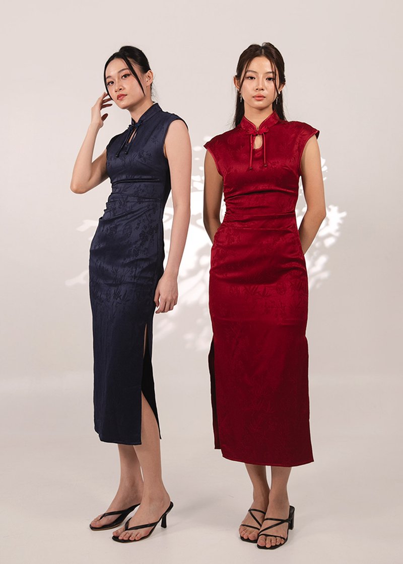 福 (Fú) designed as a living "Blessing," every inch showcases fine craftsmanship from multidimensional floral thread work to softly pleated ruching that flatters the waist. Finished with a mandarin collar, delicate pearl buttons, and flowing side slits, pair with tonal heels for a look as meaningful as it is beautiful.