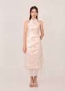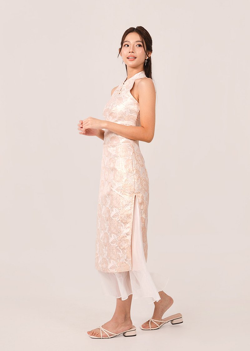 禧 (Xǐ–Happiness) Mesh Qipao Midi Dress in Champagne Pink