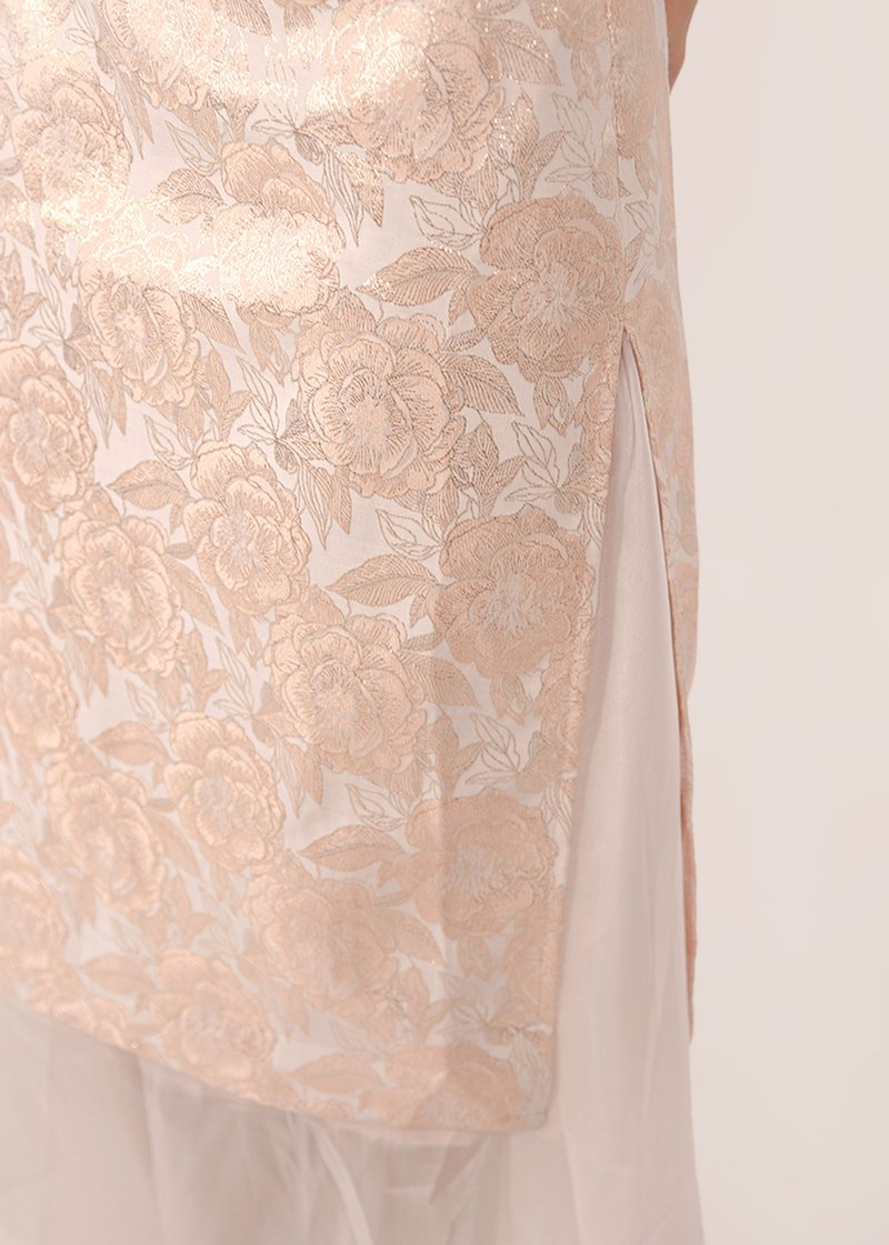 *Features a qipao neckline designed with lace ribbons with sparkling floral embroidery prints throughout, slits on both sides with a subtle layer of mesh at the hem, and concealed back zipper