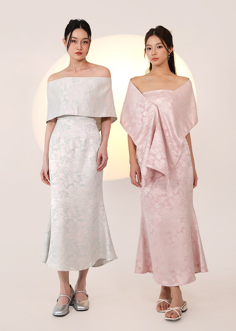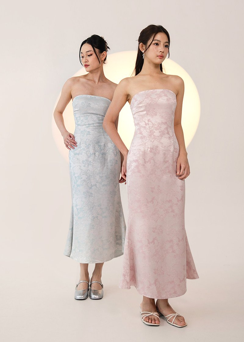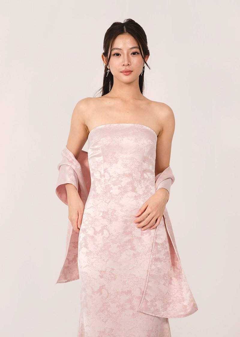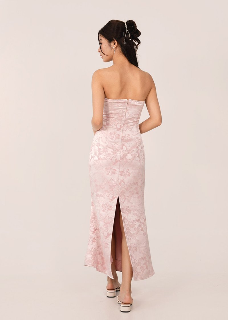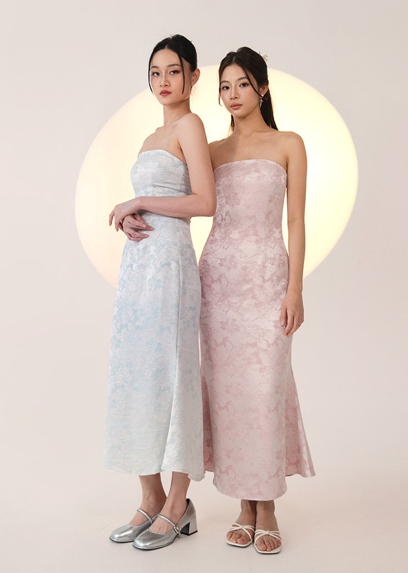 青 (Qīng–Fresh Beginnings) Jacquard Midi Dress in Gracier Pink