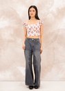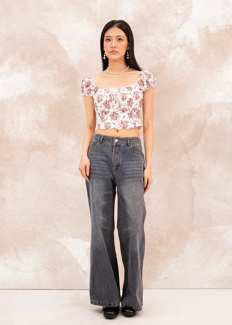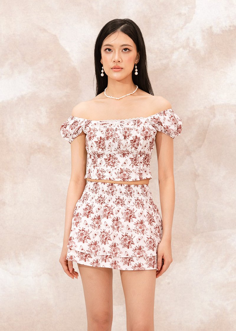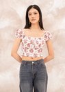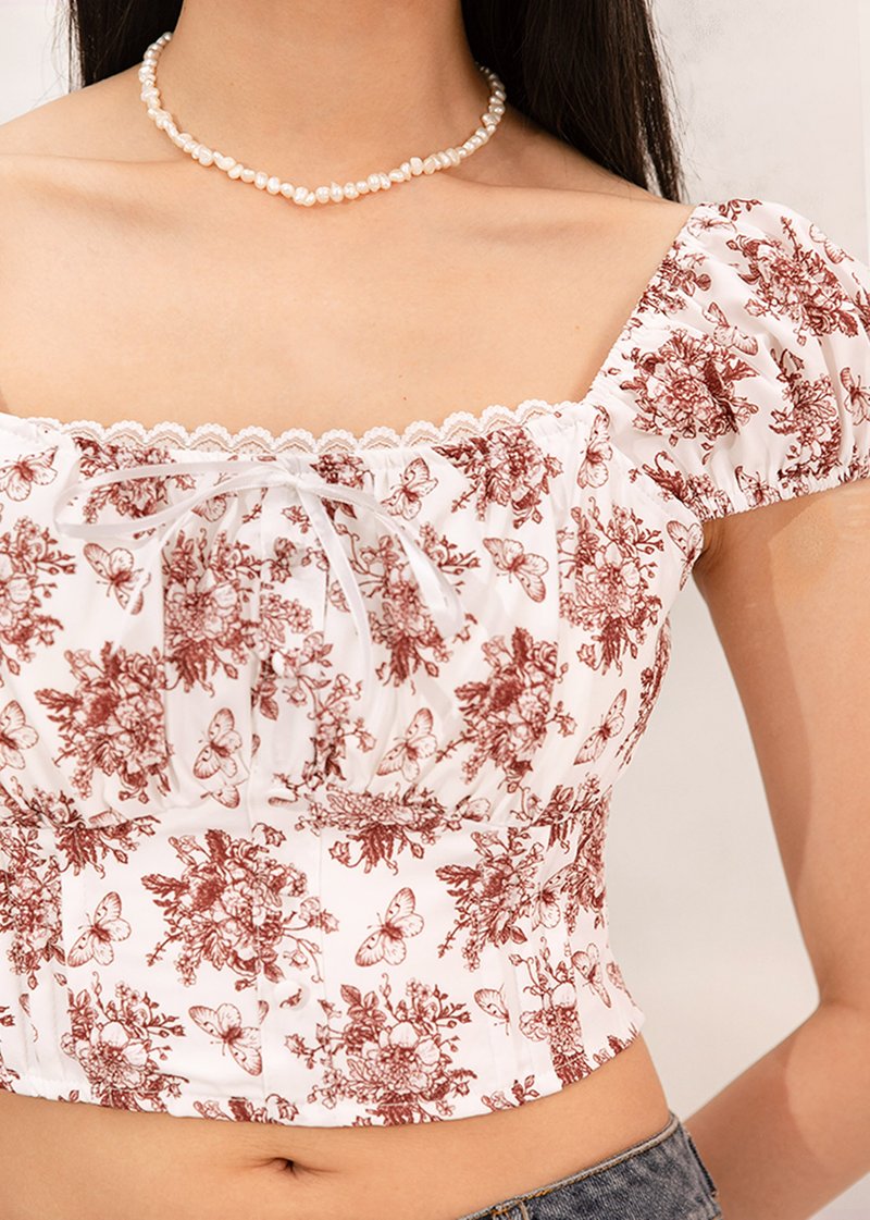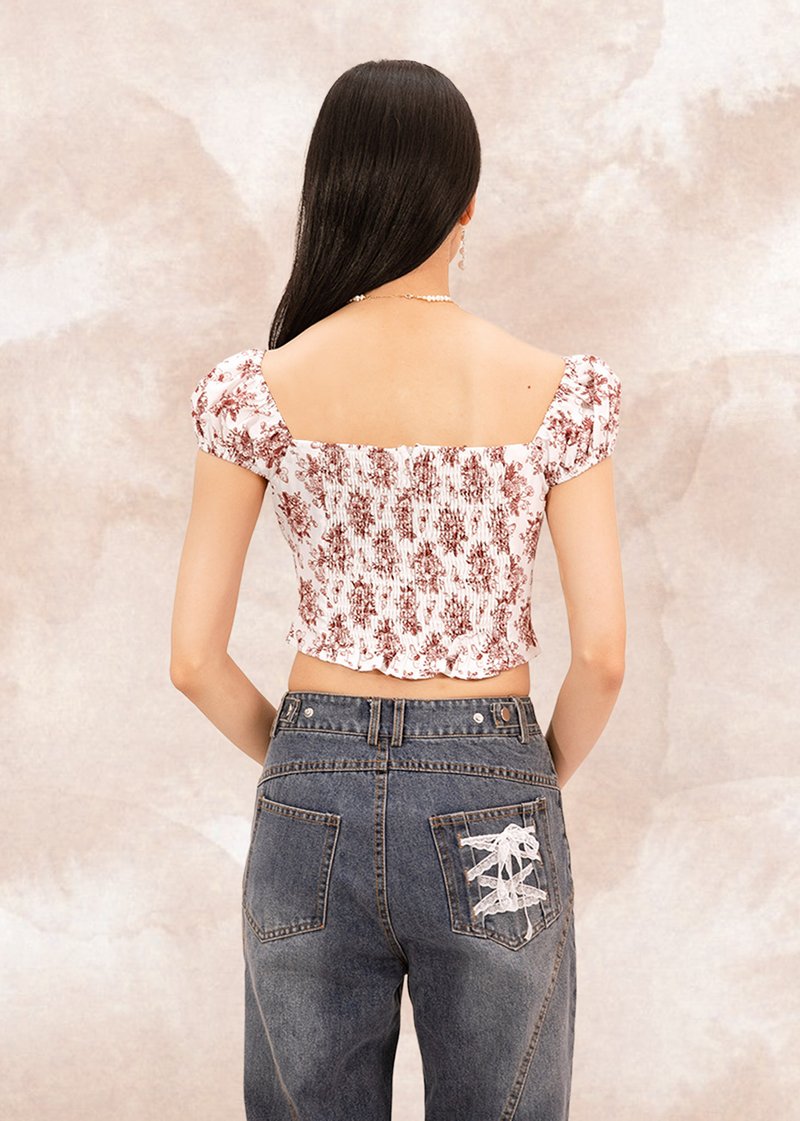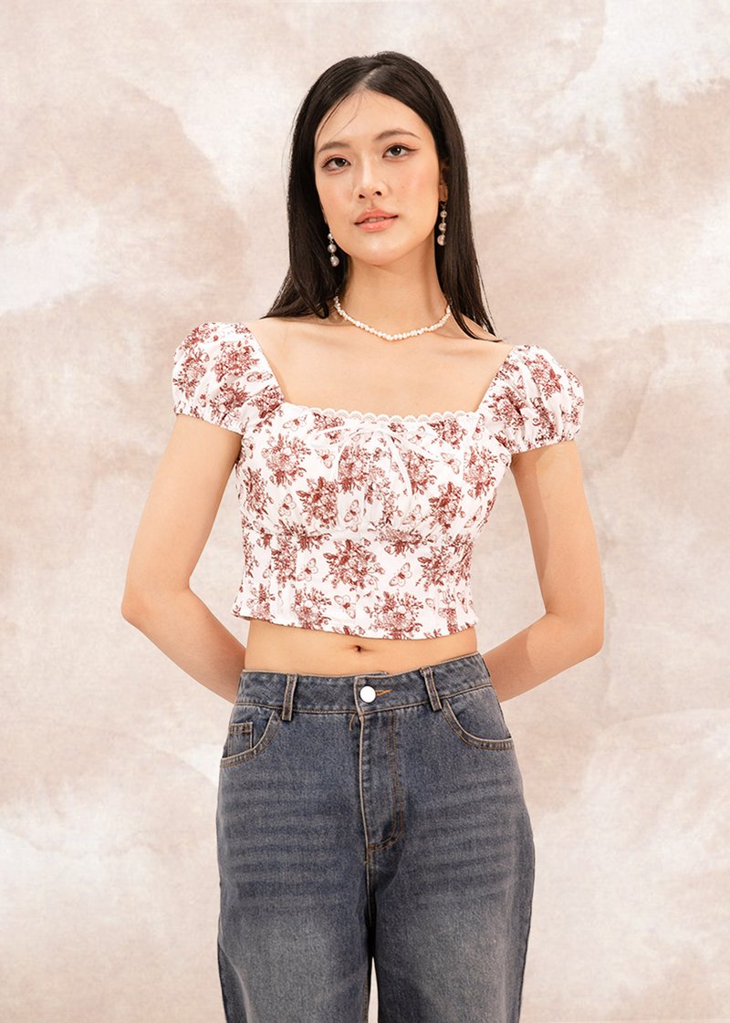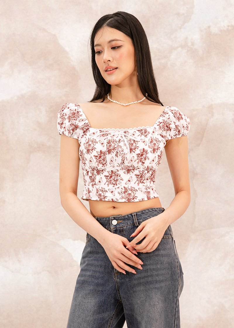 Azure Oriental Puffy Sleeve Top in Rosewood