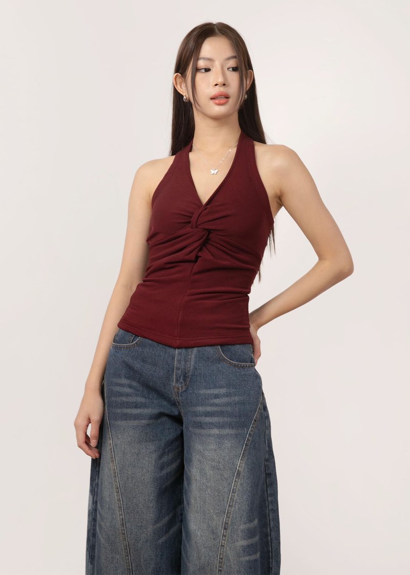 *Features a halter neck design, a knotted detail in the middle and self tie halter straps