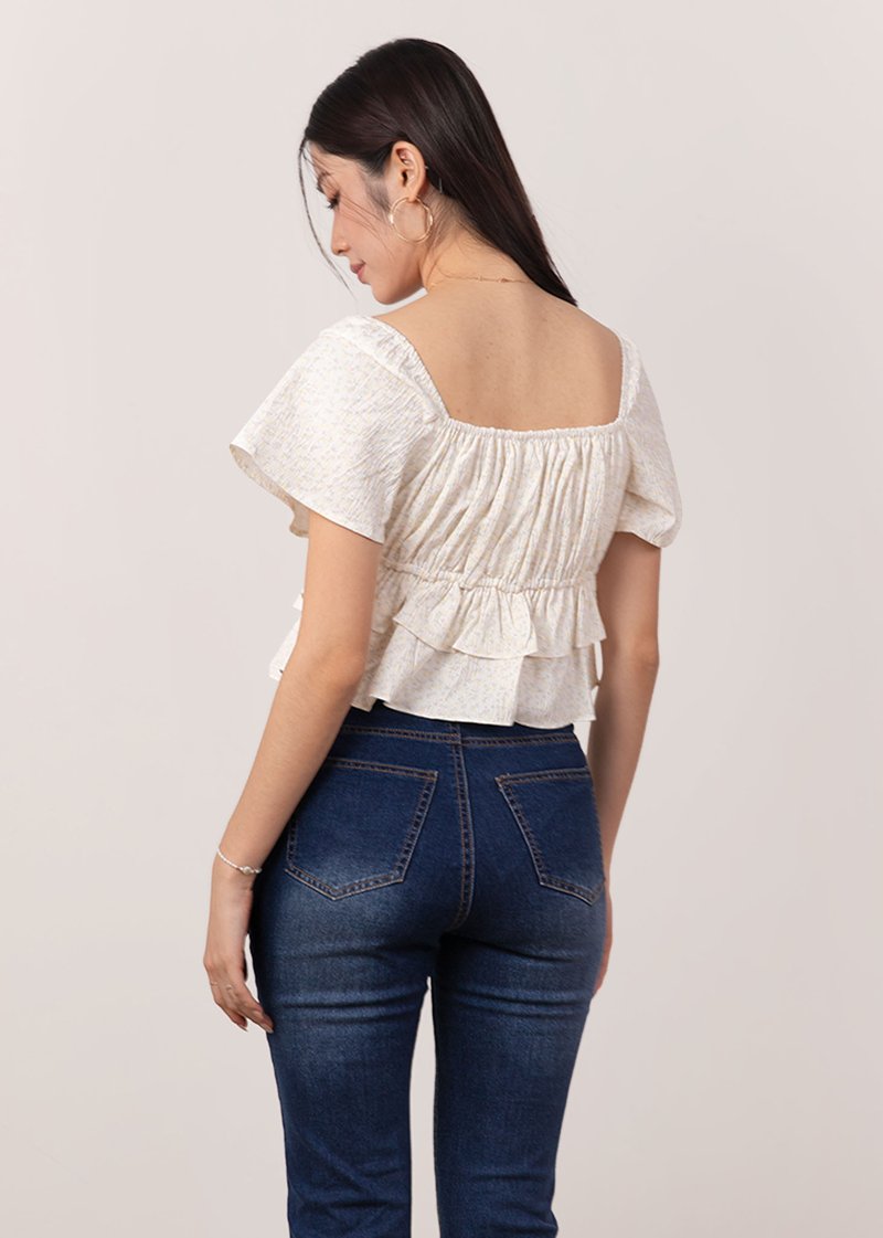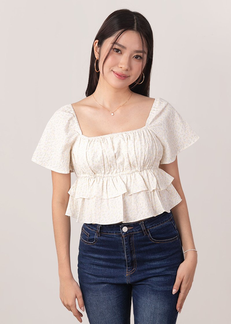 Candy Cane Peplum Flutter Top in Soft Yellow