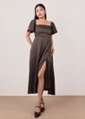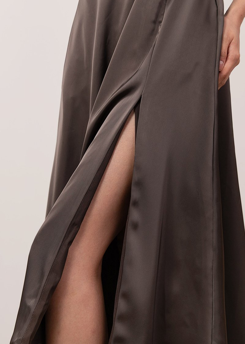Cloaked in sumptuous, liquid satin, Celestine is a true investment in grandeur and style. Its elegant square neckline and fluid silhouette elevated by a silk sash ensure you are perfectly dressed for any occasion of note, including wine and dine evenings, after parties, or as impeccable wedding guest attire.