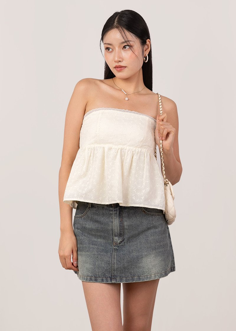 Cherry Kiss Babydoll Peplum Top in Buttermilk