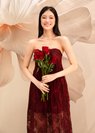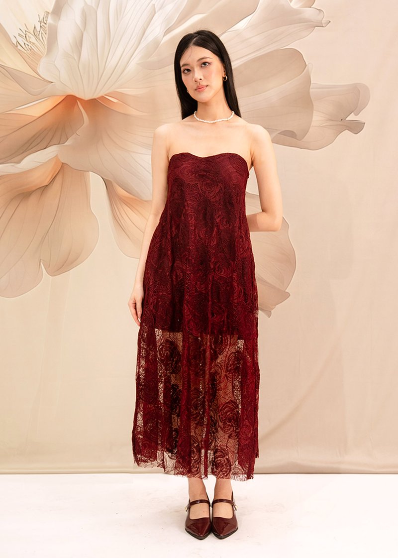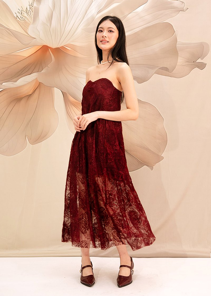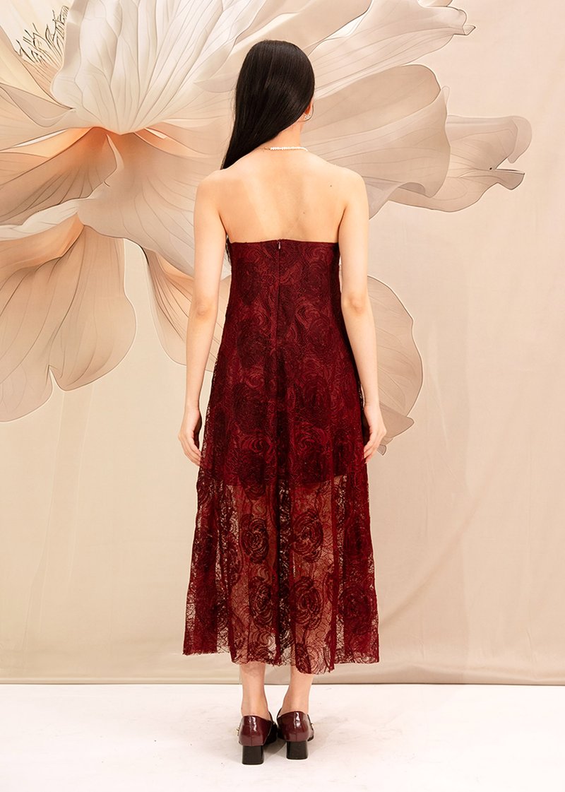 *Features a nude mesh neckline (non visible when worn) with sweetheart details and a concealed back zipper