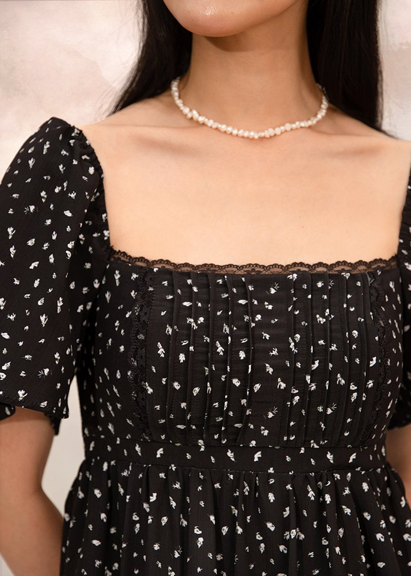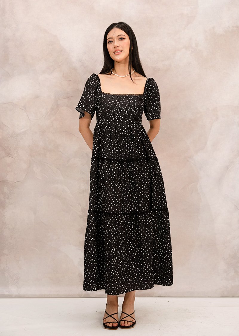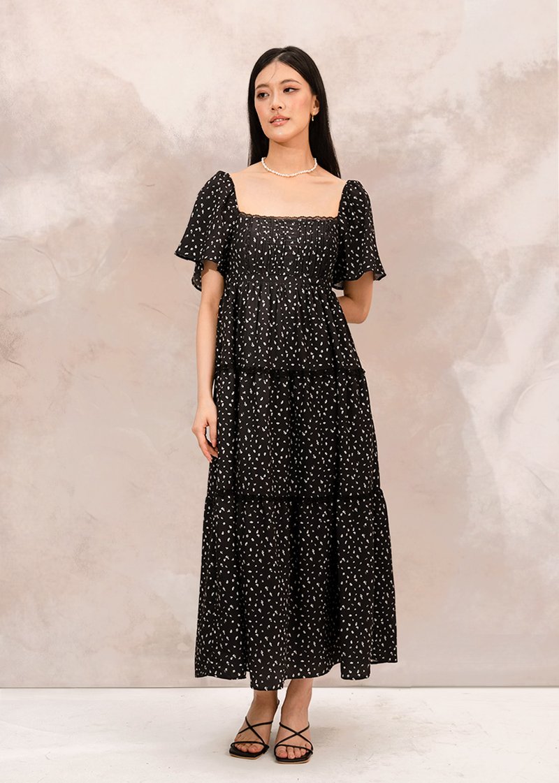 *Features a midi tiered dress with lace details on the 2 tiers, designed with flutter sleeves, pleats lace details on the bust, lace trimmings on the bust line, a smocked back and concealed back zipper