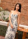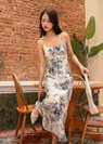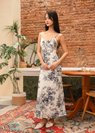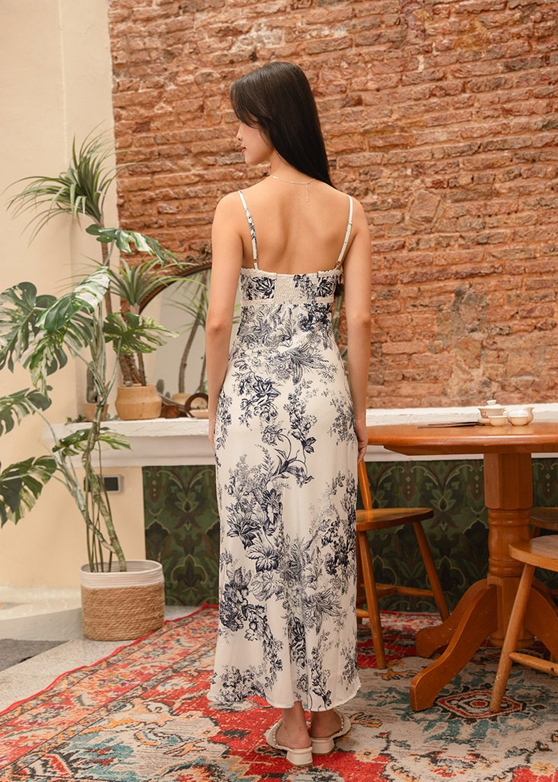 *Features a midi dress with lace hemmings on the under bust, a small smocked back, concealed side zipper and functional tie string on the front bust