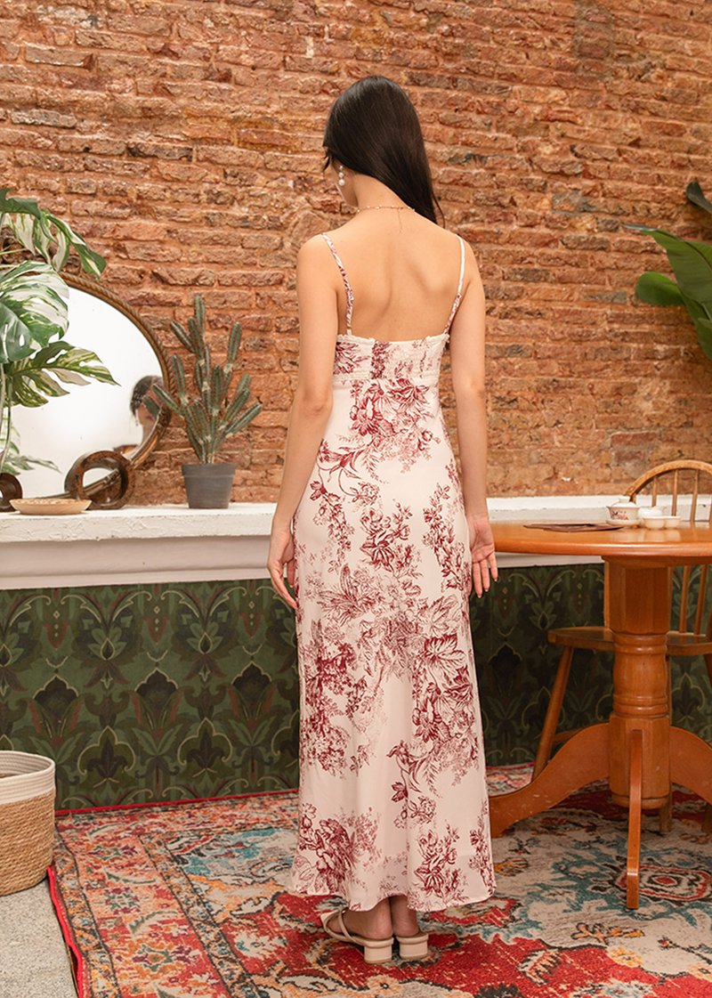 Florina Spag Floral Midi Dress in Deep Burgundy