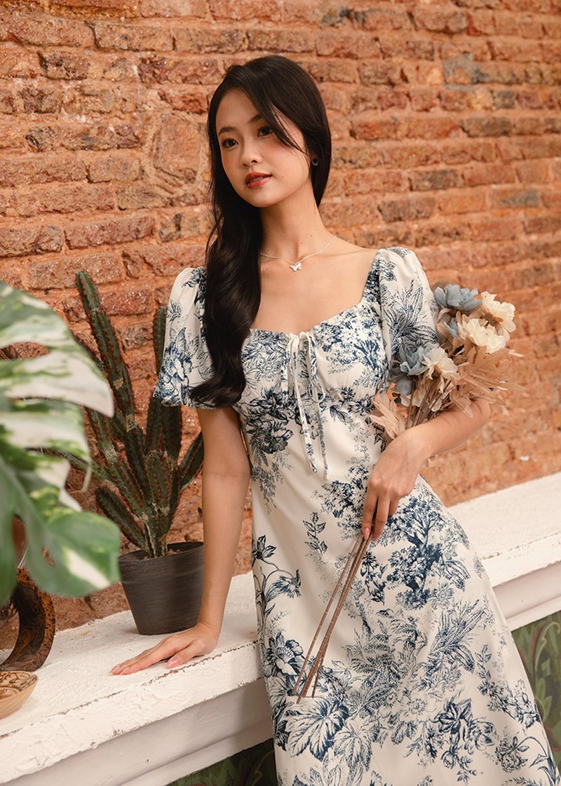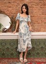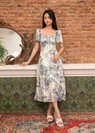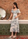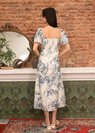 Flurina Flutter Sleeves Floral Midi Dress in Blue