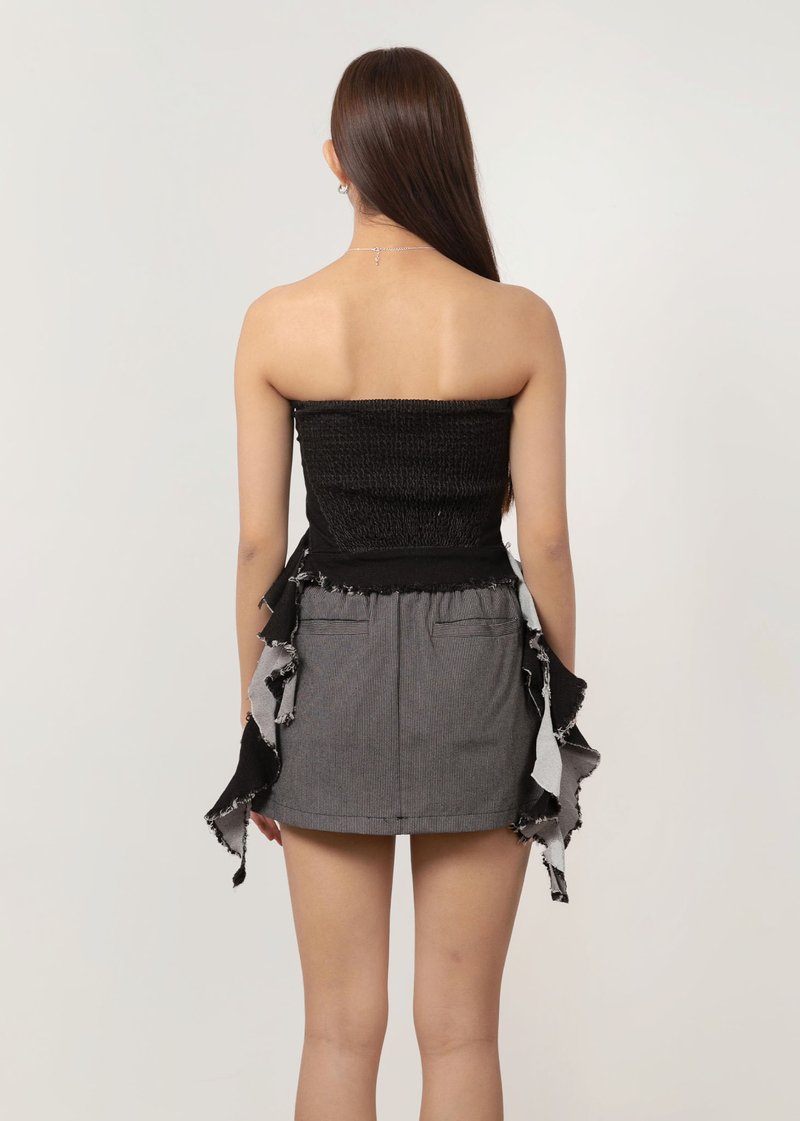 Cut from soft stretch denim, it falls easily on the body, shaped by a straight neckline softened with asymmetrical jellyfish-inspired detailing. A smocked back and built-in support keep it secure and comfortable. Finished with a side slit, it moves naturally from day to night.
