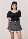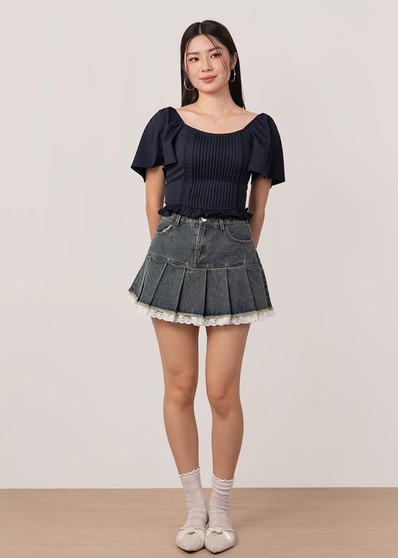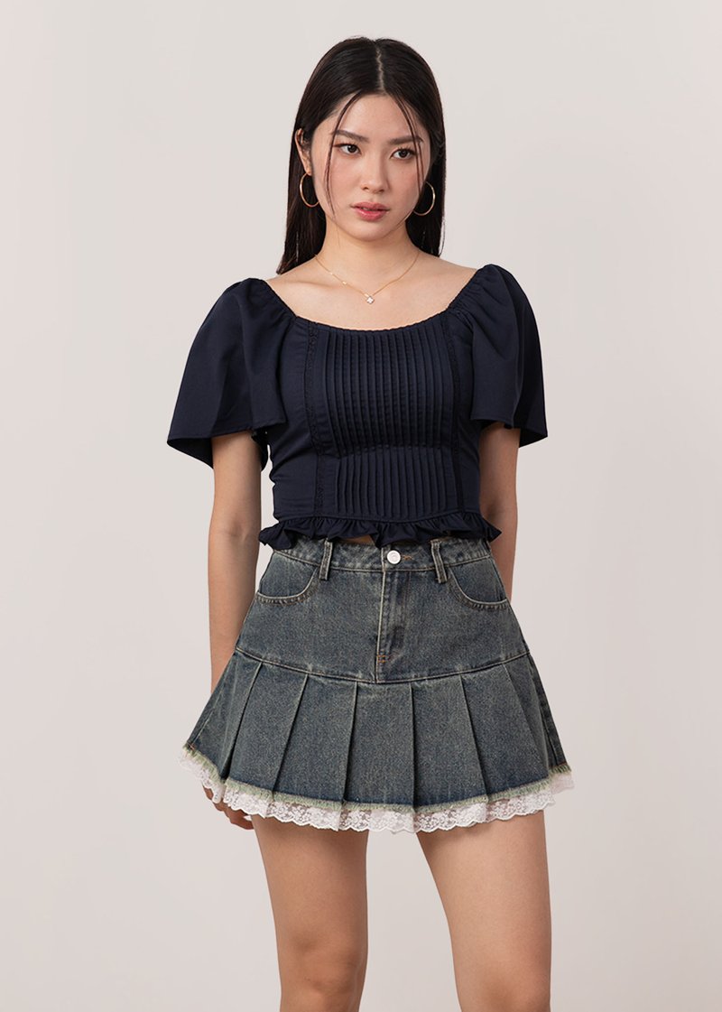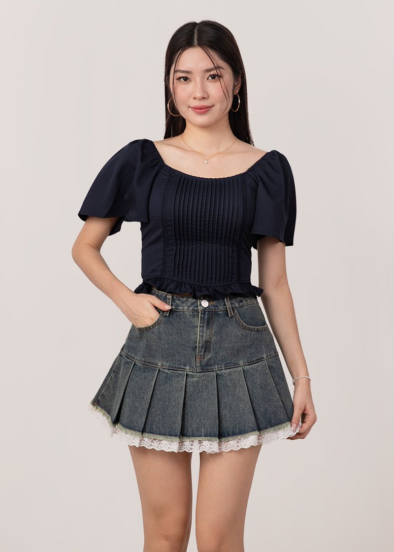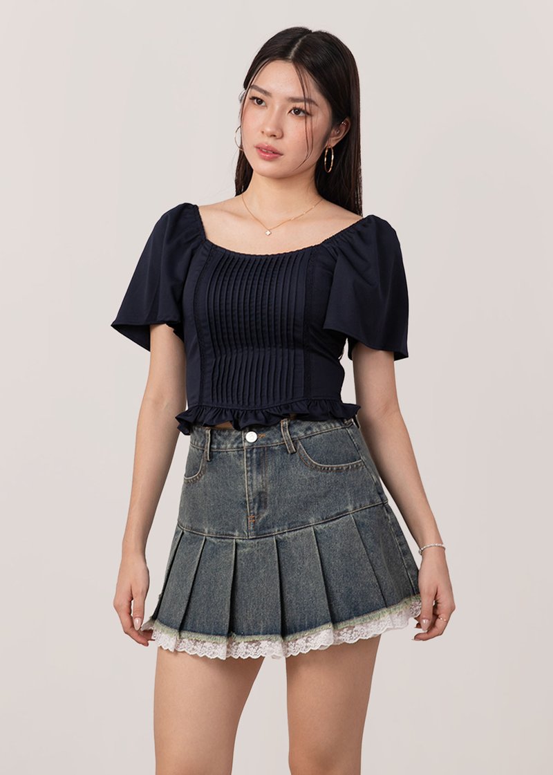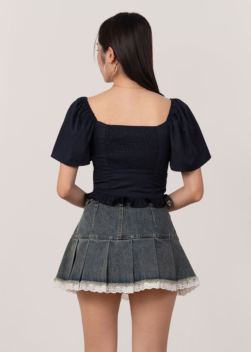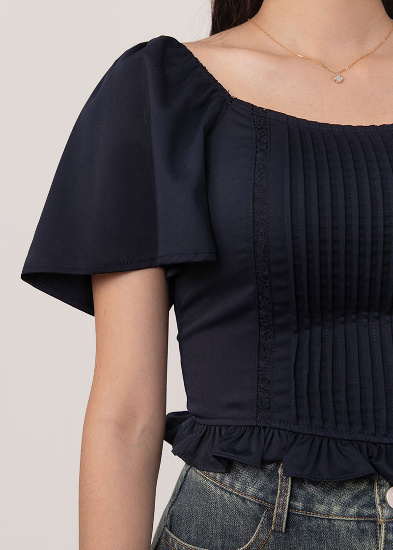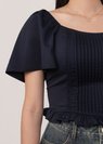 Mistletoe Flutter Sleeves Pleated Top in Midnight