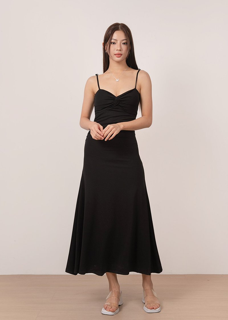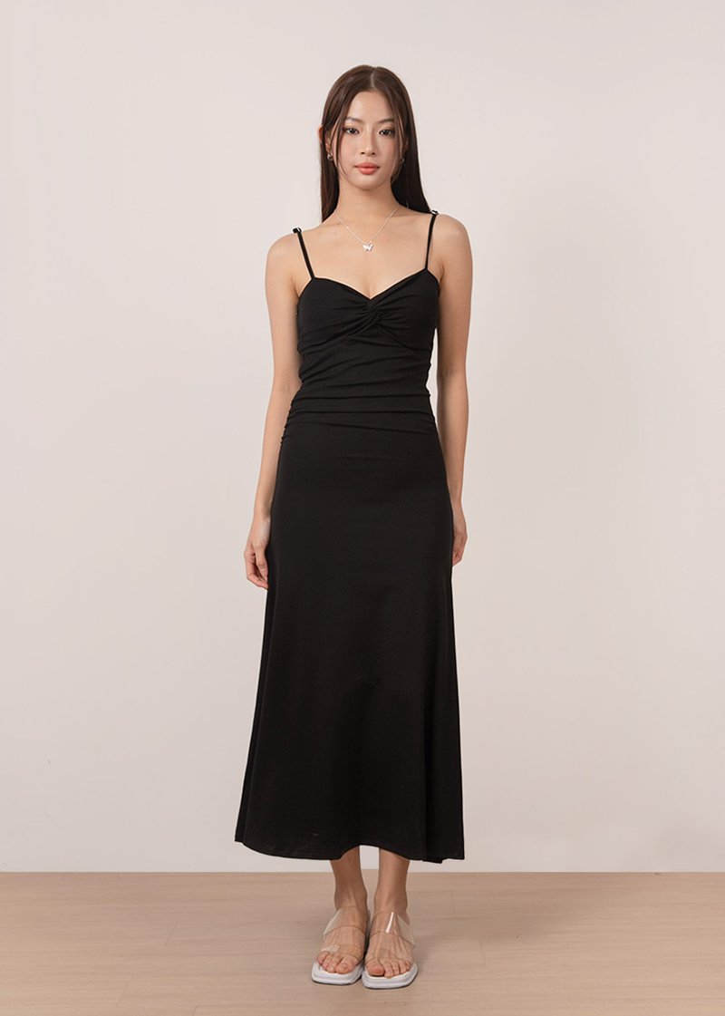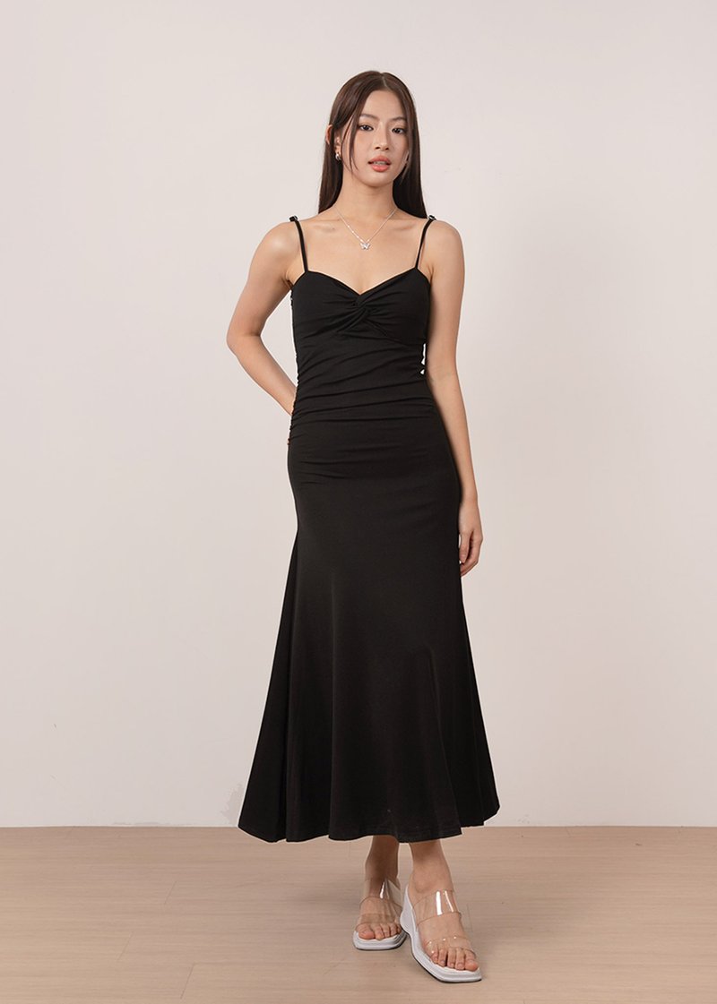 *Features a bodycon midi dress with a knotted sweetheart neckline and ruching at the bust area, adjustable straps and ruching at the waist